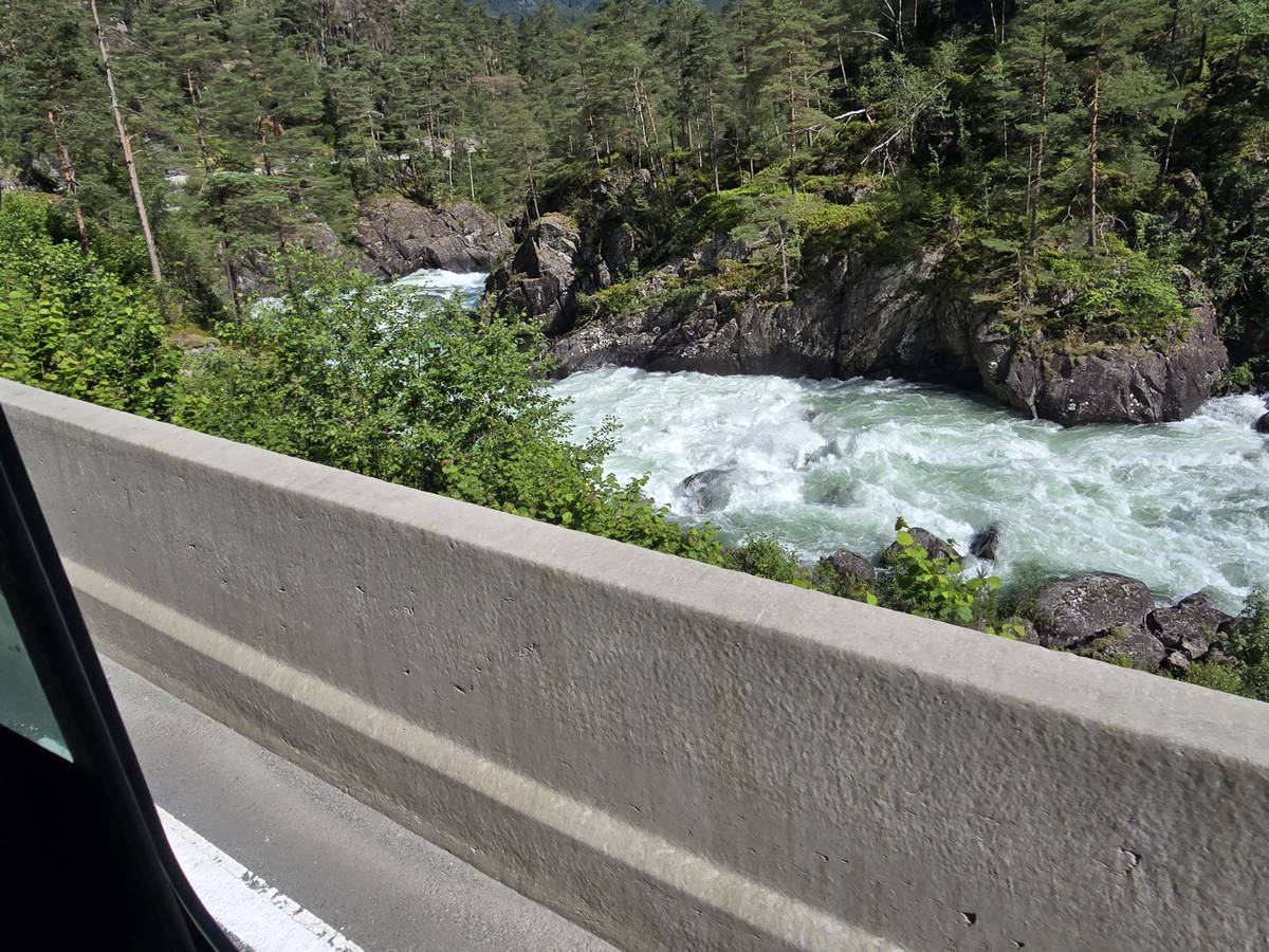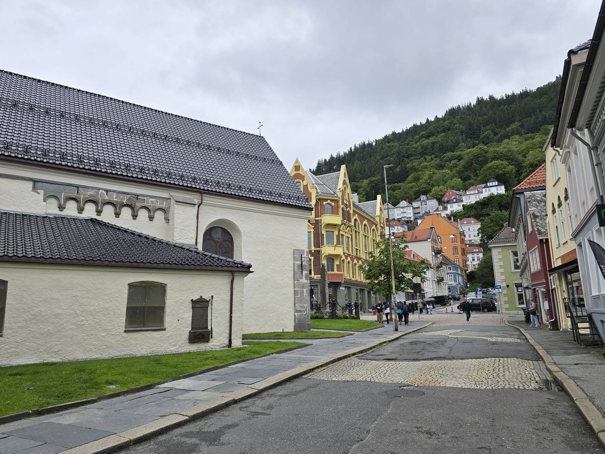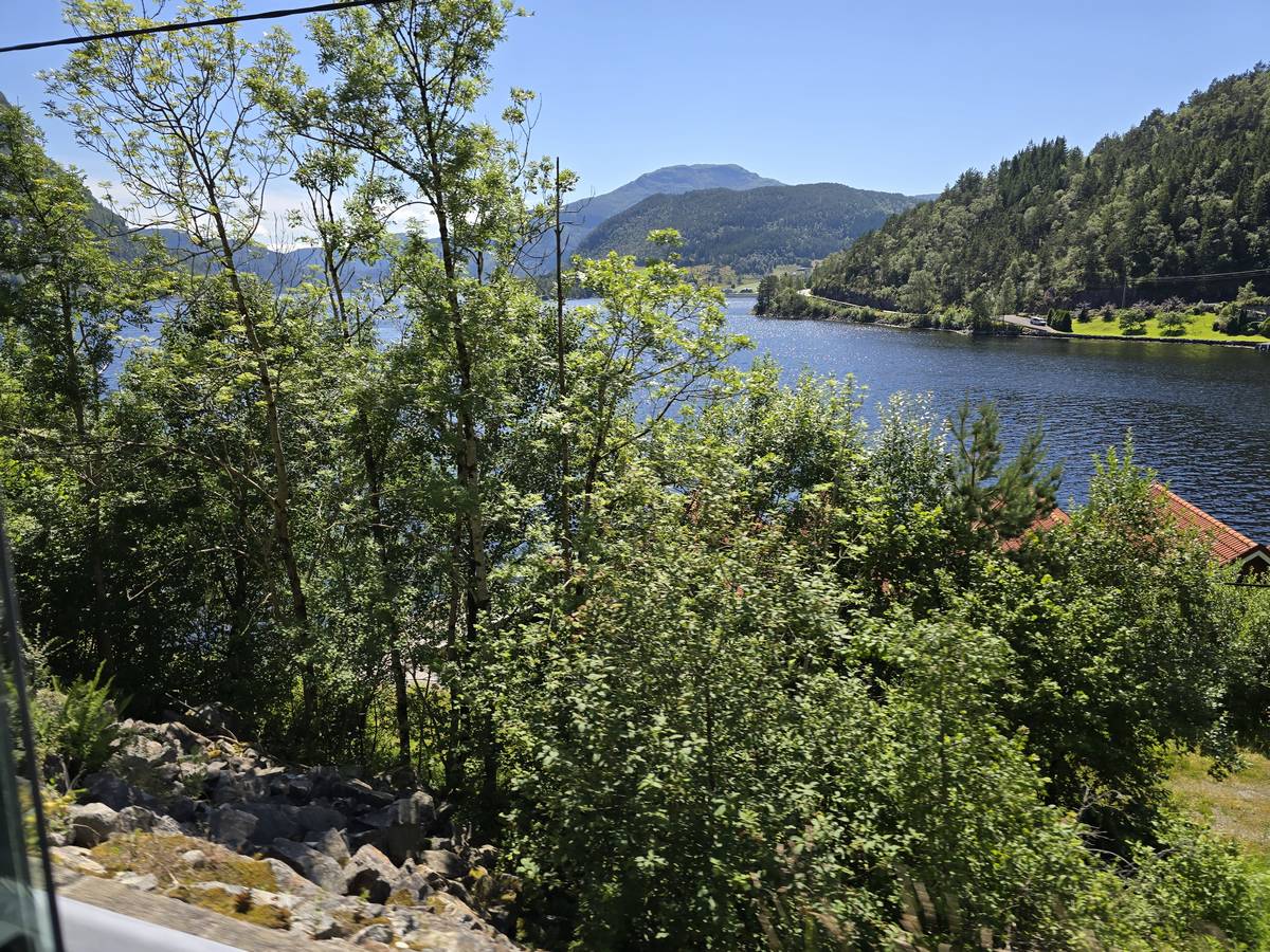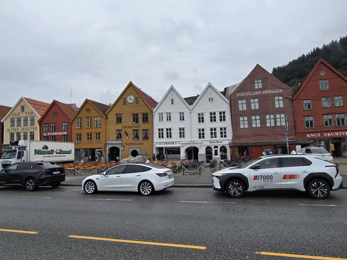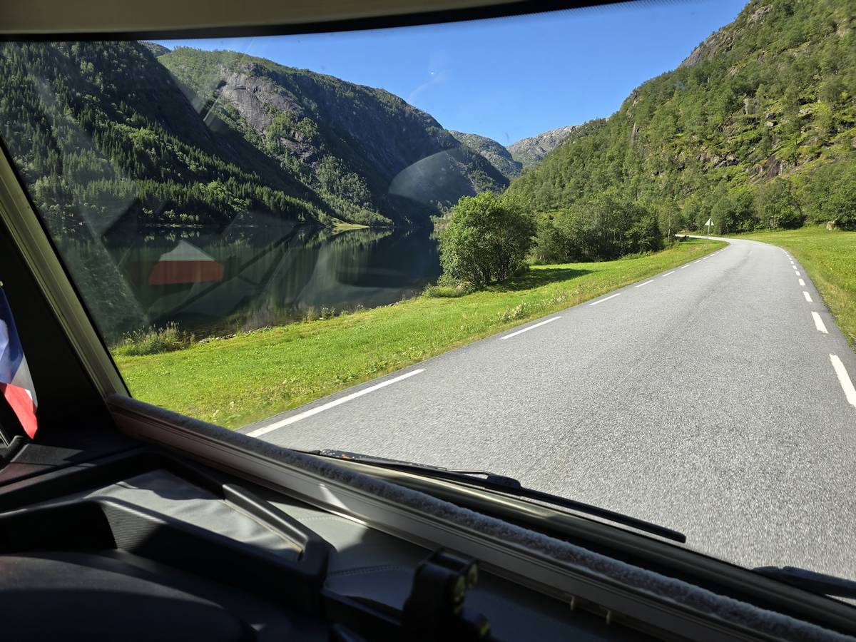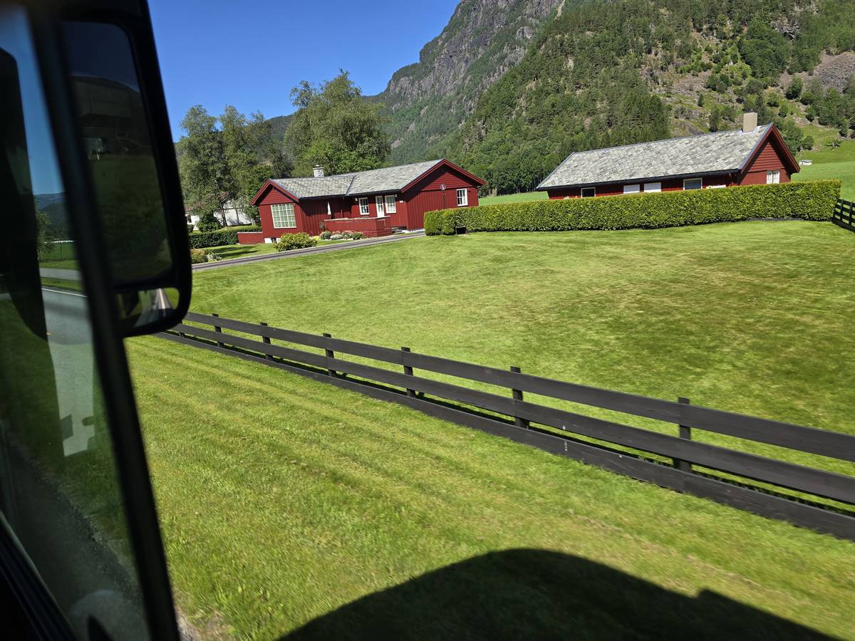 La nuit a été bonne malgré le bruit des moteurs des gros bateaux à touristes. Quand je dis nuit, c'est d'une nuit encore claire dont je parle, nous n'avons pas encore retrouvé une vraie nuit, ce n'est qu'à Jorpeland que nous retrouverons une nuit qu'on pourra appeler nuit. Ce matin, nous retournons faire un tour, cette fois dans le vieux Bergen. Il pleut, mais nous sommes bretons!!! Nous déjeunerons sur le lieu de bivouac, puis nous nous dirigeons vers les cascades jumelles de Latefossen que nous atteindrons le soir. Nous dormons sur le parking des cascades de Latefossen (Coordonnées : 59.948080, 6.583847)