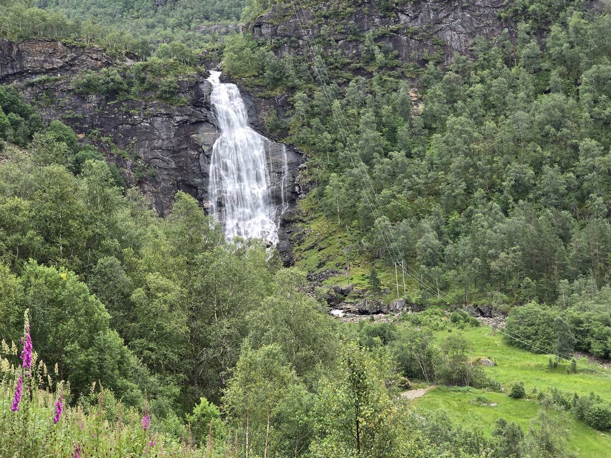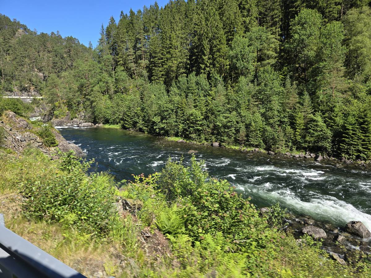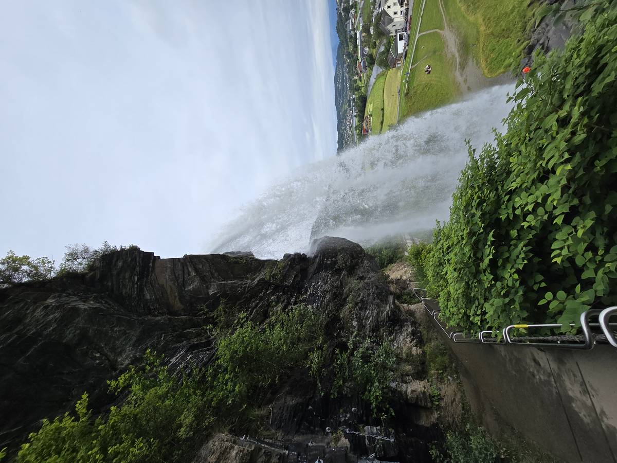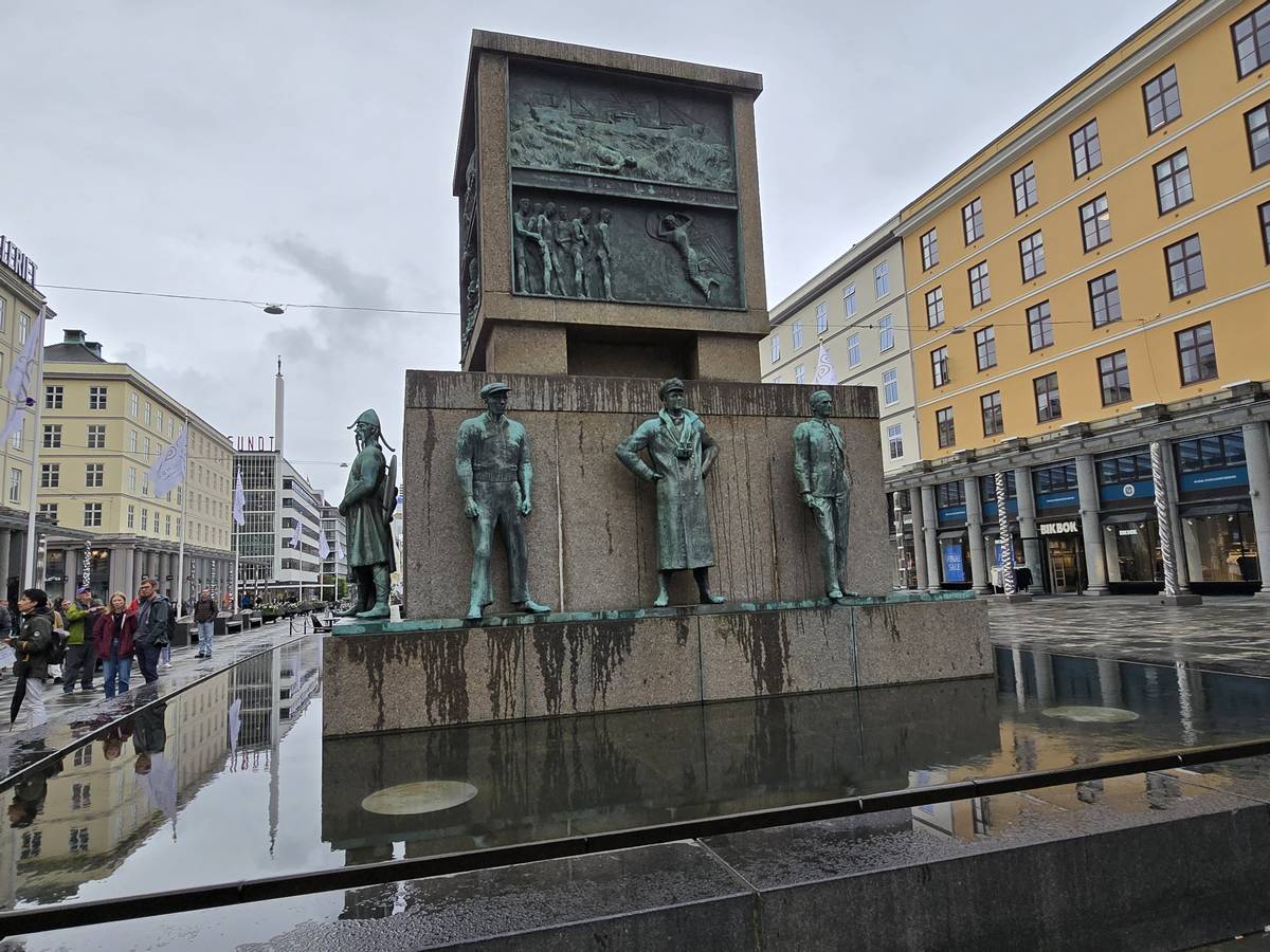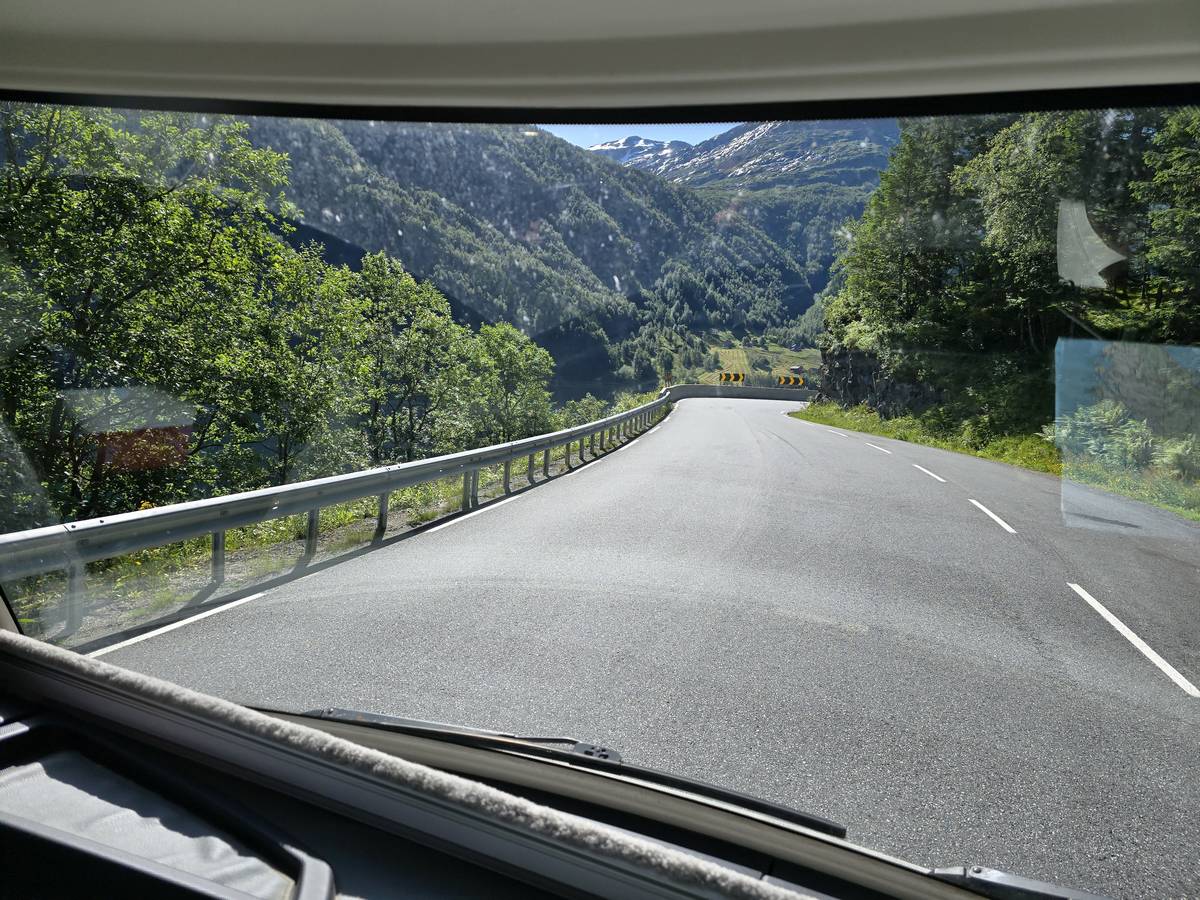 La nuit a été bonne malgré le bruit des moteurs des gros bateaux à touristes. Quand je dis nuit, c'est d'une nuit encore claire dont je parle, nous n'avons pas encore retrouvé une vraie nuit, ce n'est qu'à Jorpeland que nous retrouverons une nuit qu'on pourra appeler nuit. Ce matin, nous retournons faire un tour, cette fois dans le vieux Bergen. Il pleut, mais nous sommes bretons!!! Nous déjeunerons sur le lieu de bivouac, puis nous nous dirigeons vers les cascades jumelles de Latefossen que nous atteindrons le soir. Nous dormons sur le parking des cascades de Latefossen (Coordonnées : 59.948080, 6.583847)