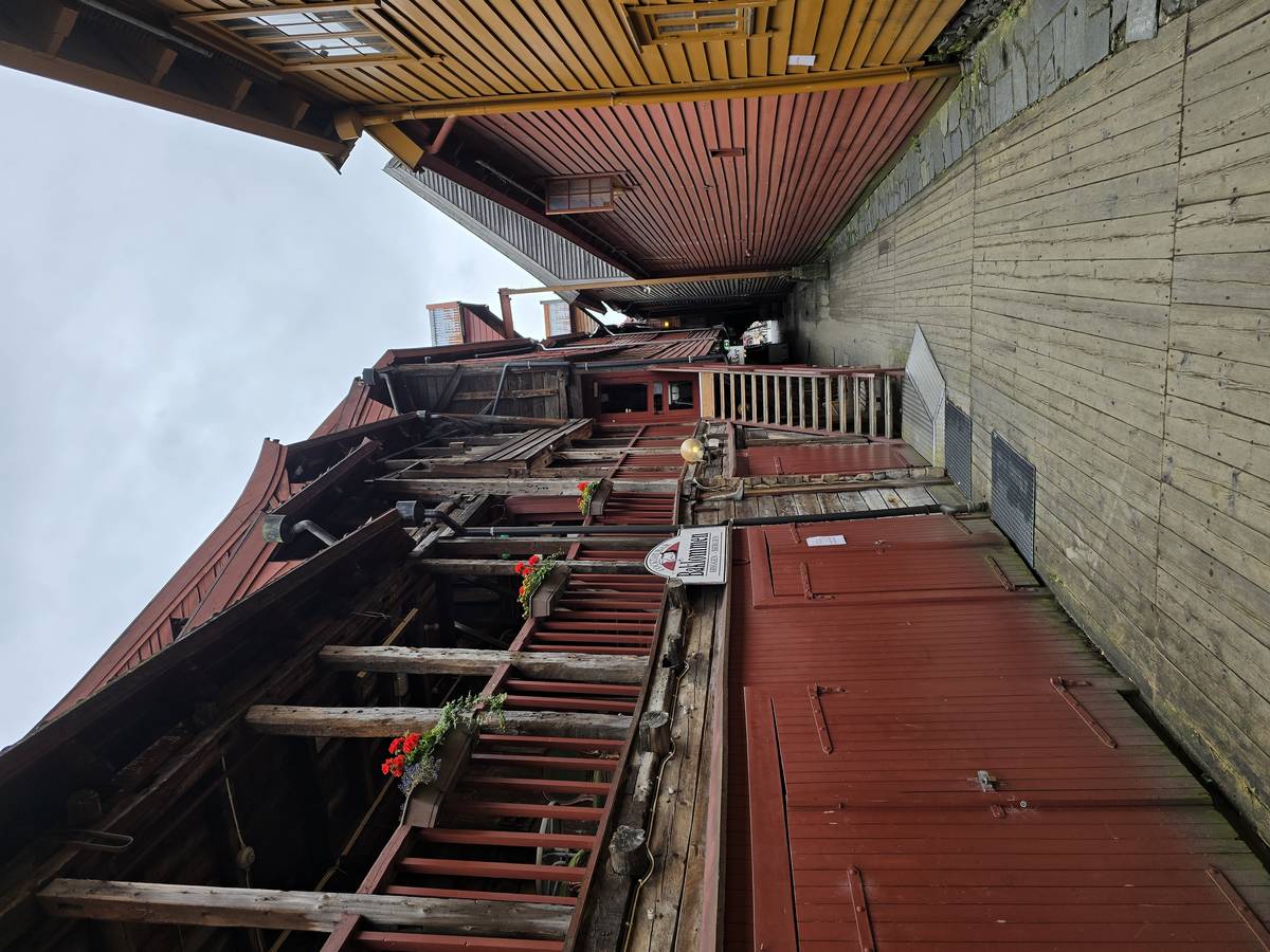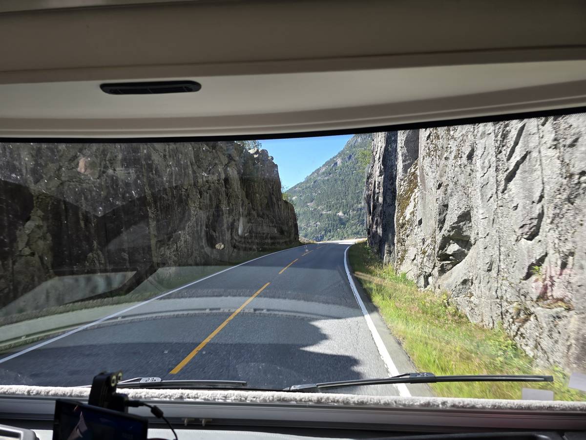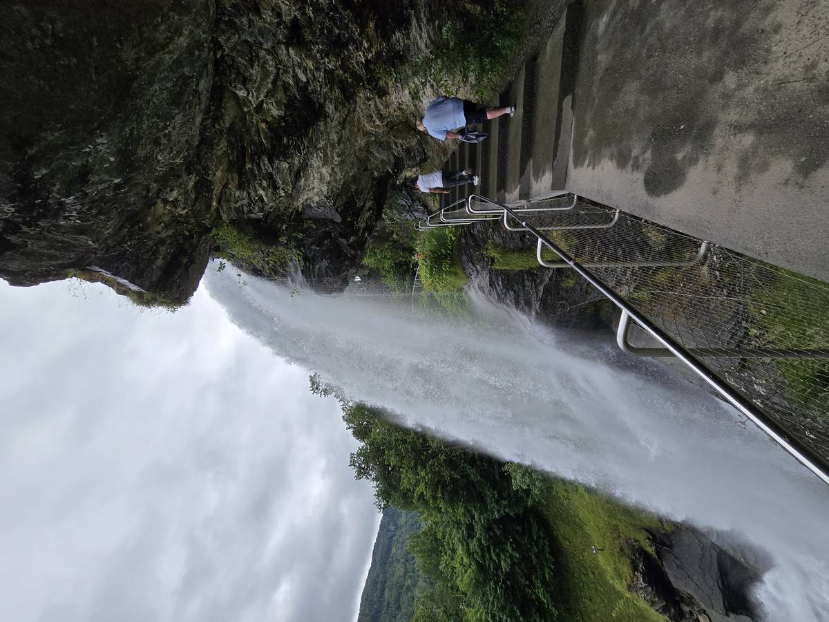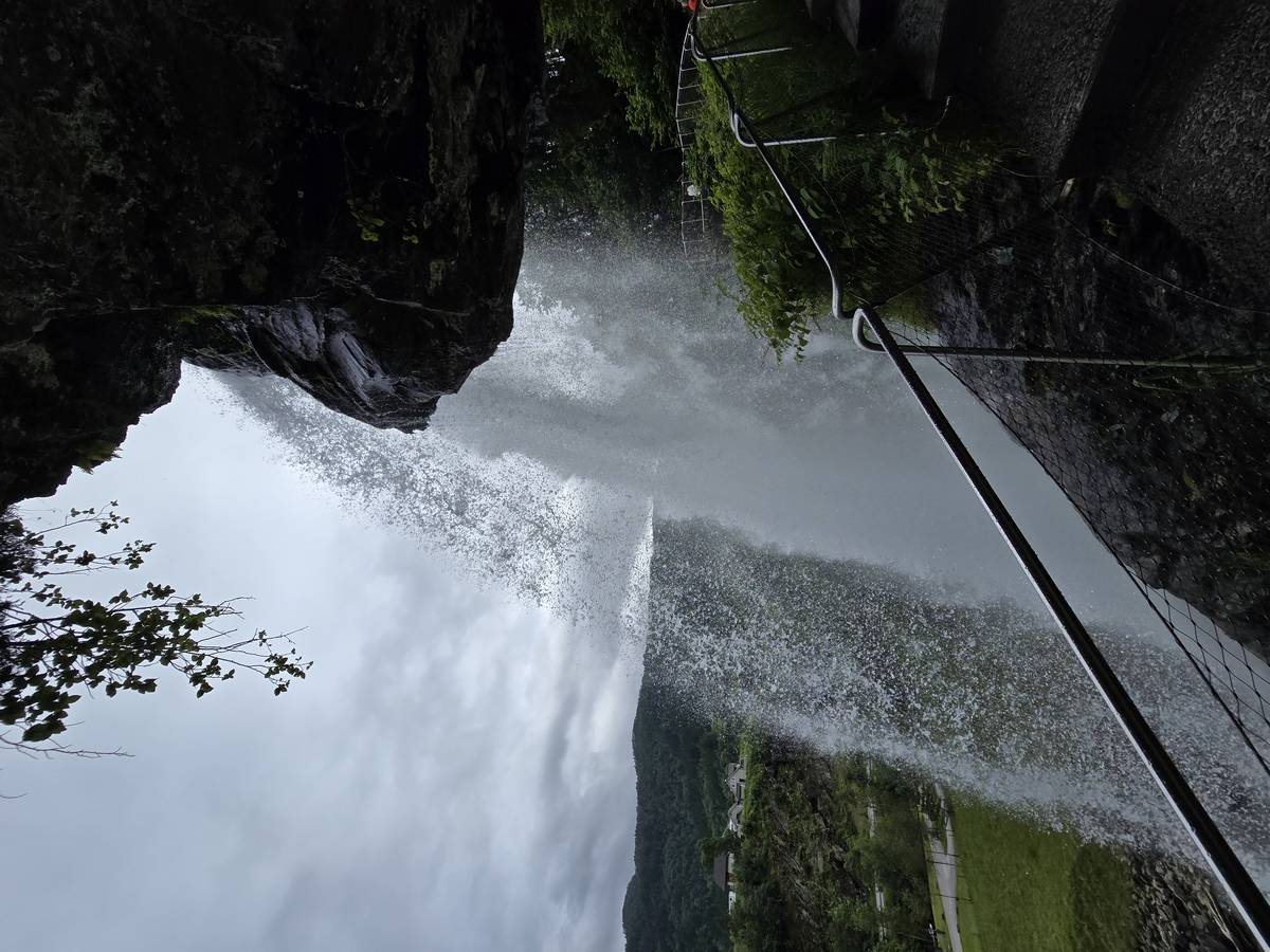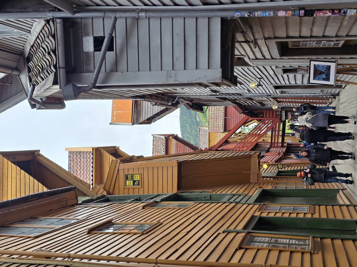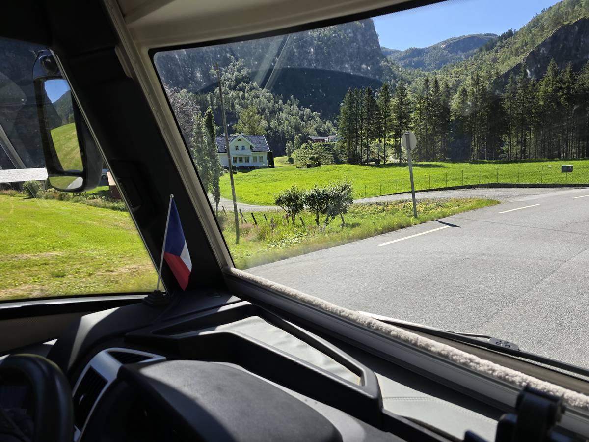 La nuit a été bonne malgré le bruit des moteurs des gros bateaux à touristes. Quand je dis nuit, c'est d'une nuit encore claire dont je parle, nous n'avons pas encore retrouvé une vraie nuit, ce n'est qu'à Jorpeland que nous retrouverons une nuit qu'on pourra appeler nuit. Ce matin, nous retournons faire un tour, cette fois dans le vieux Bergen. Il pleut, mais nous sommes bretons!!! Nous déjeunerons sur le lieu de bivouac, puis nous nous dirigeons vers les cascades jumelles de Latefossen que nous atteindrons le soir. Nous dormons sur le parking des cascades de Latefossen (Coordonnées : 59.948080, 6.583847)