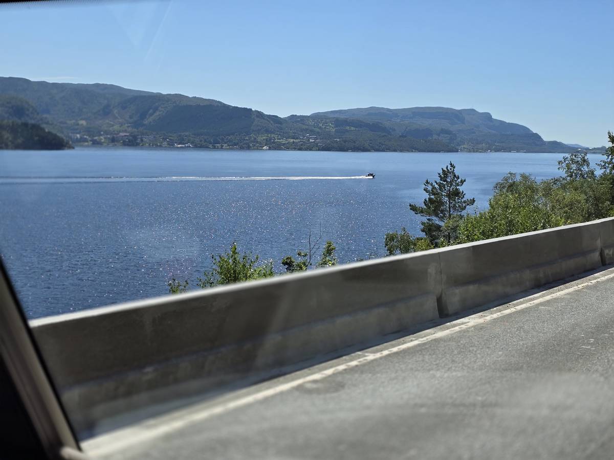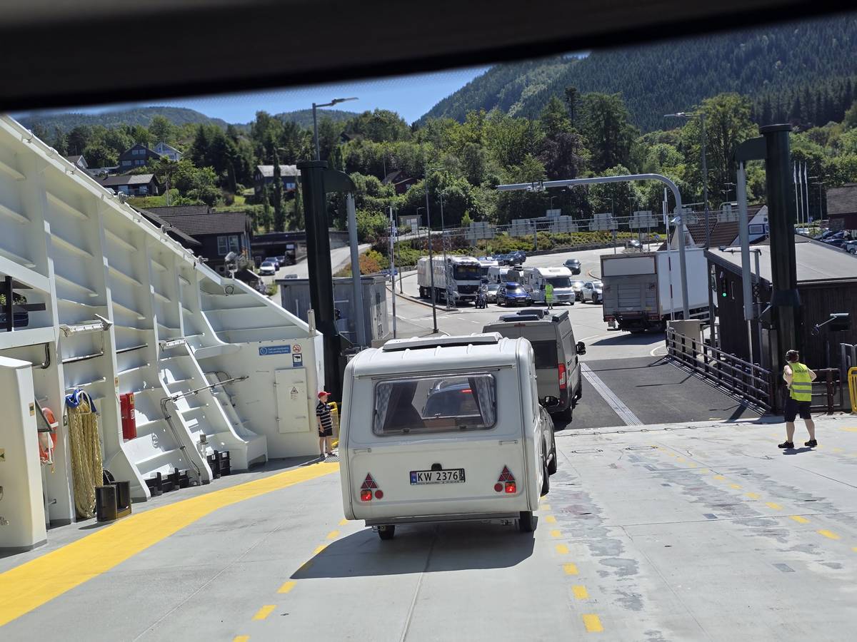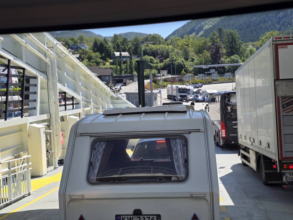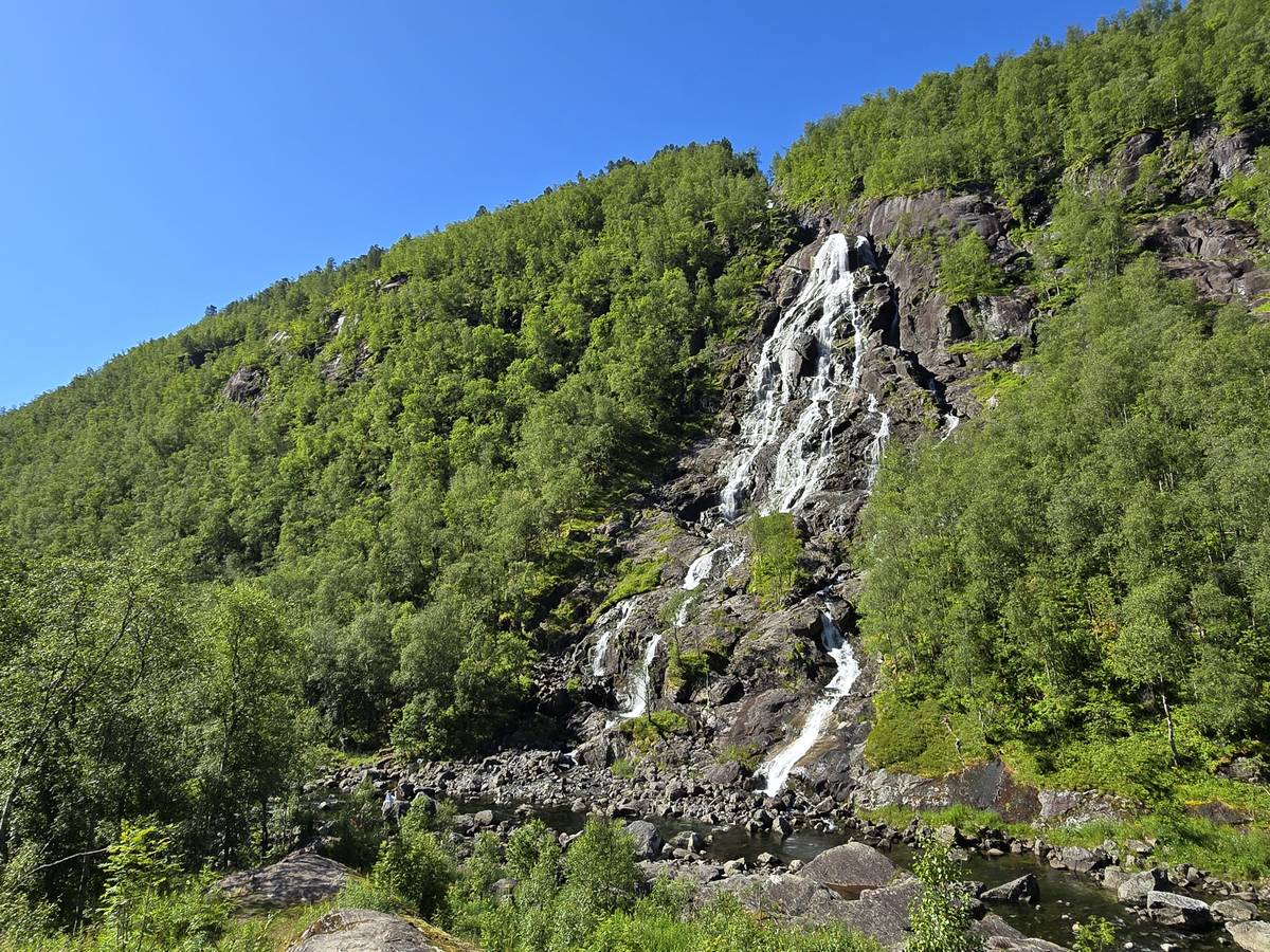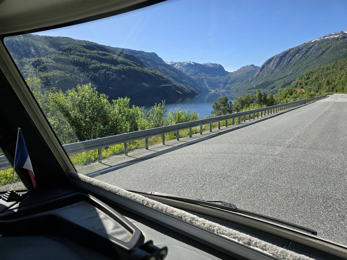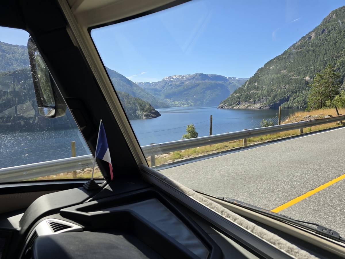Ensuite, on continue la route qui passe par un ferry pour atteindre les cascades jumelles de Latefossen :