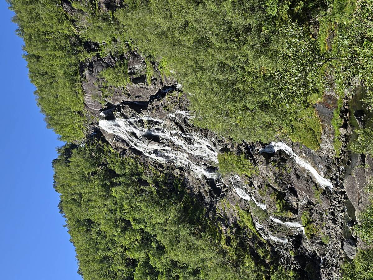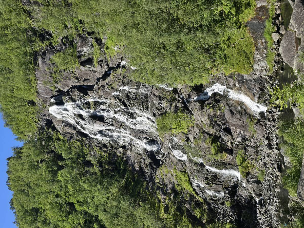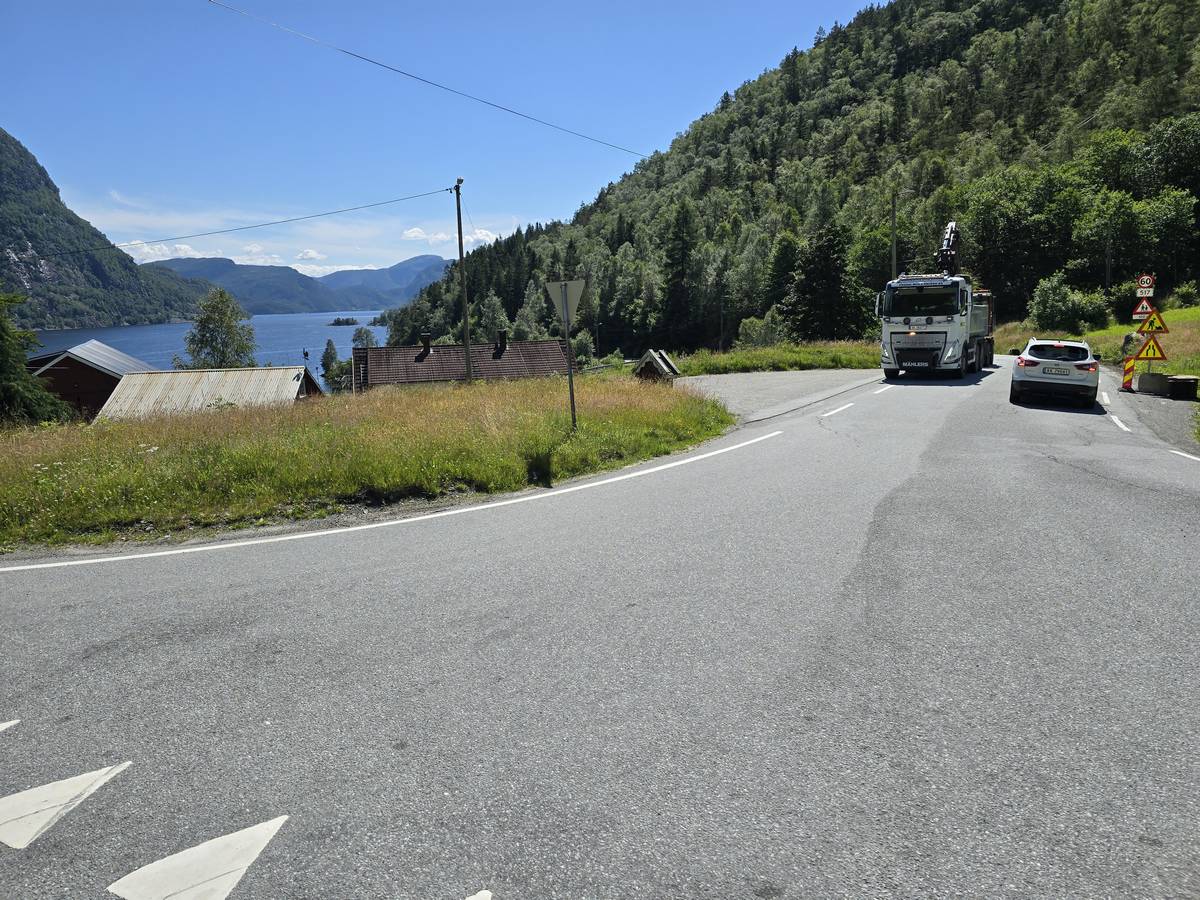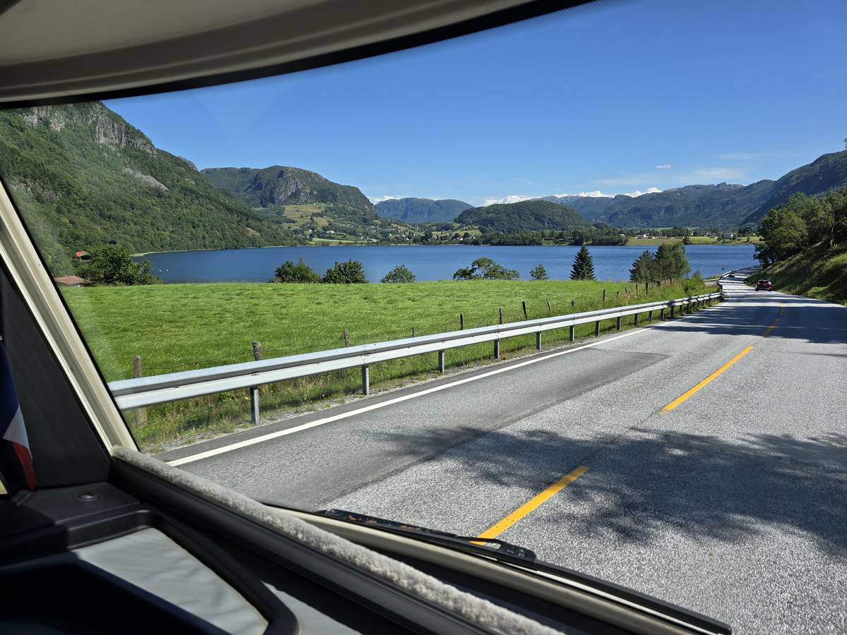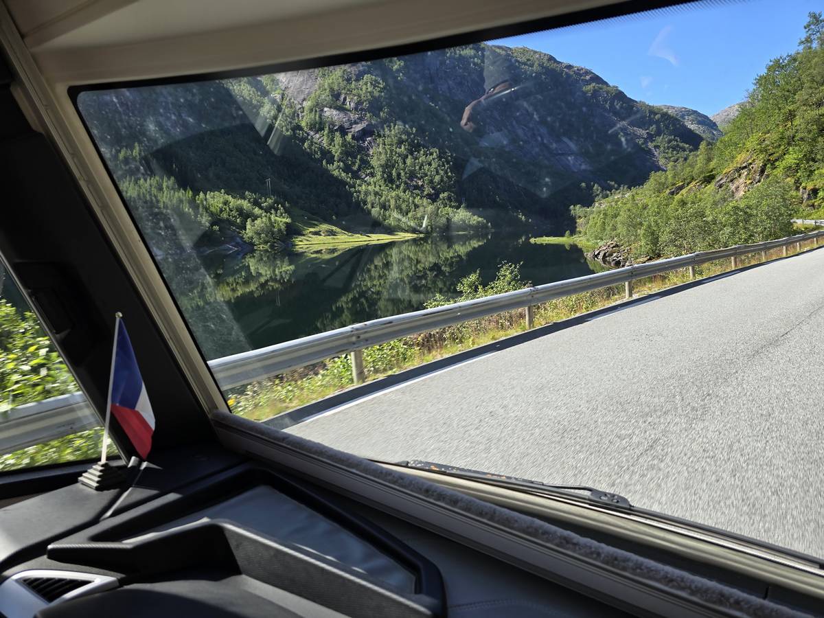 Ensuite, on continue la route qui passe par un ferry pour atteindre les cascades jumelles de Latefossen :