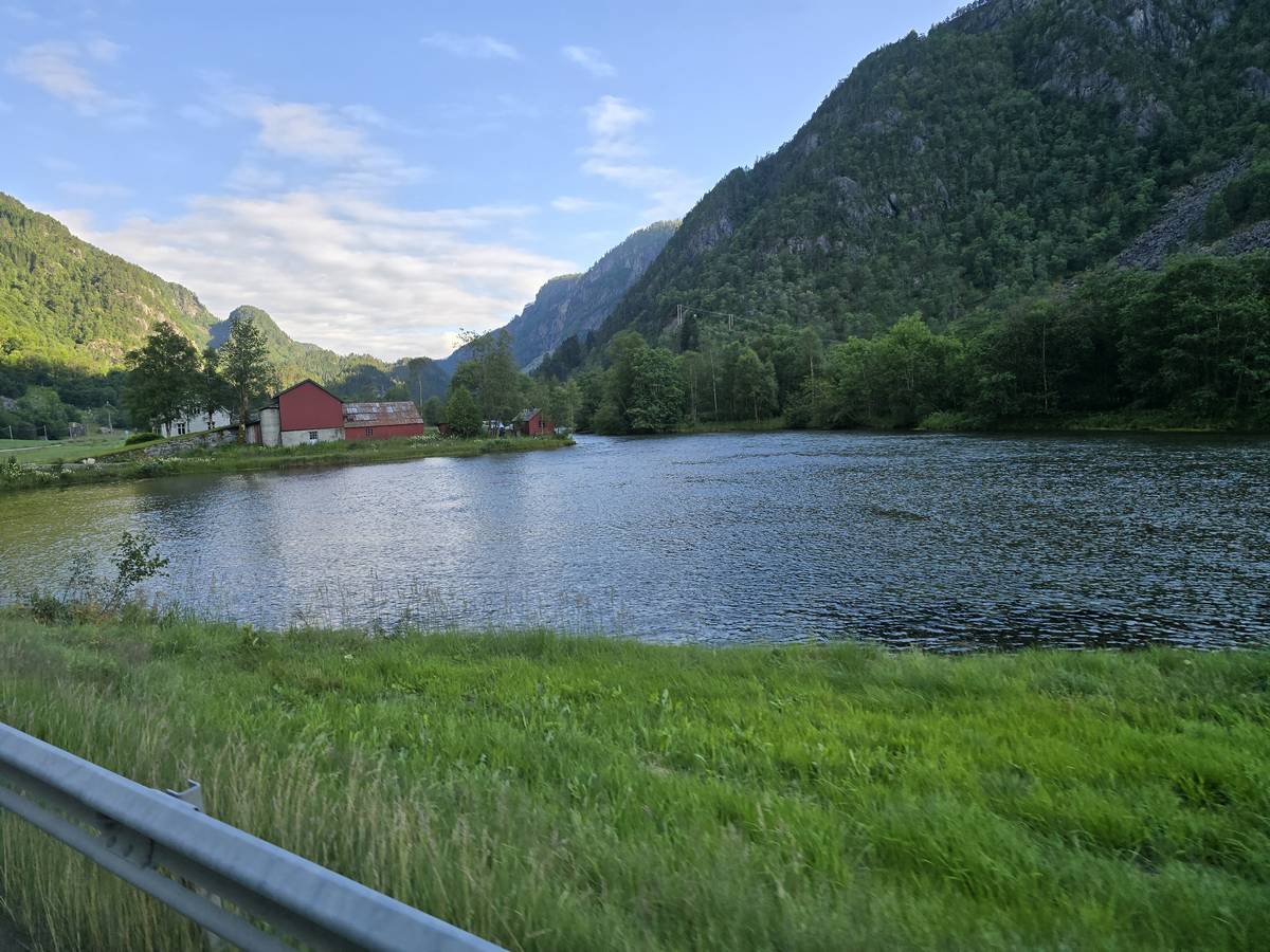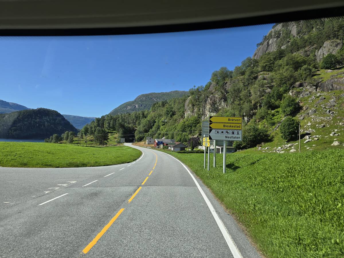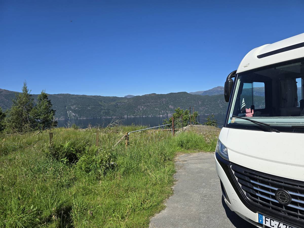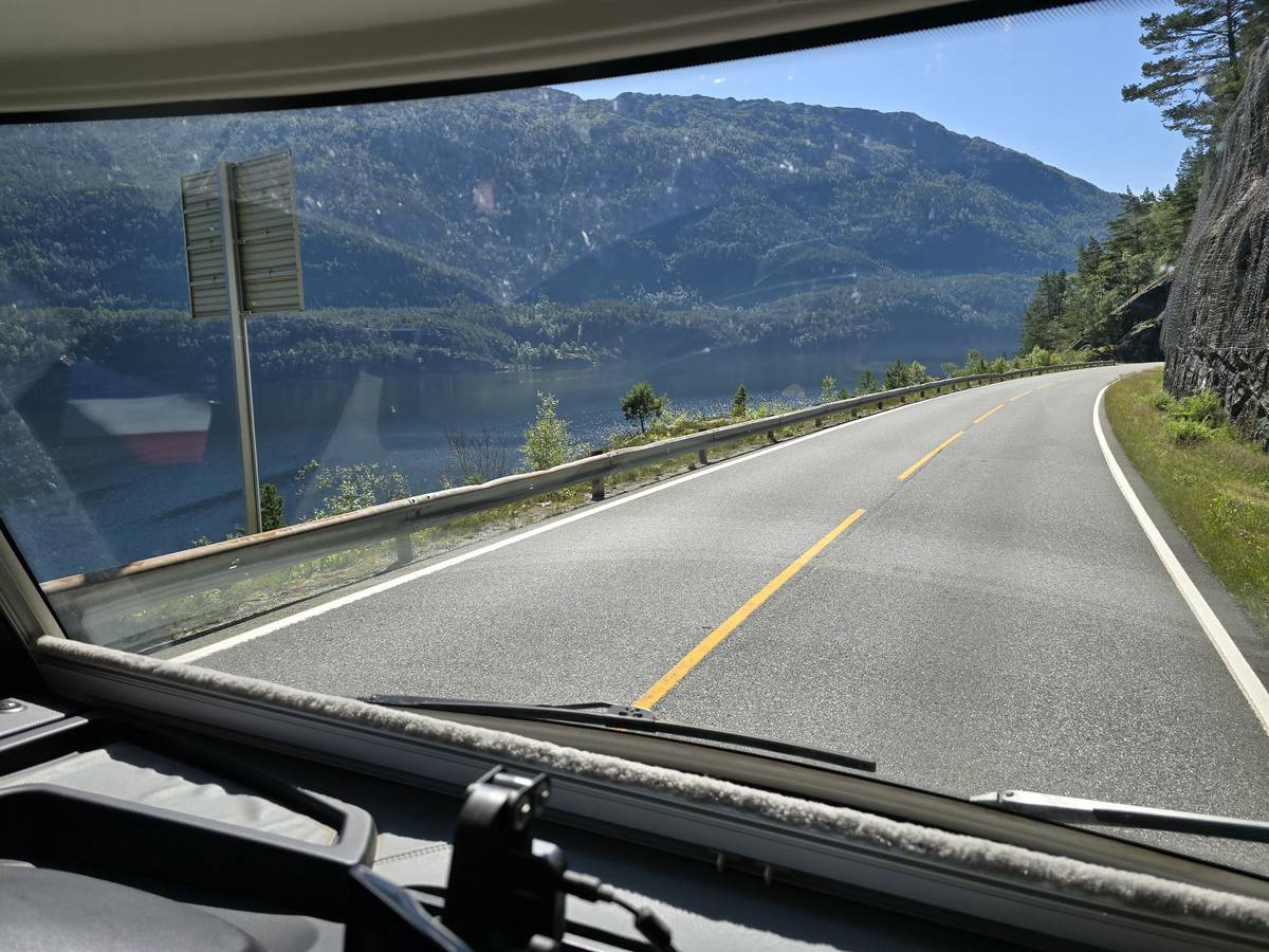 Nous quittons les cascades jumelles de Latefossen en direction du Preikeistolen, non sans avoir pris quelques clichés de ces merveilleuses chutes tombant dans un bruit étourdissant qui nous a "bercé" toute la nuit! Nous bivouaquons à Jorpeland près Preikeistolen. (Coordonnées : 59.006104, 6.060958)