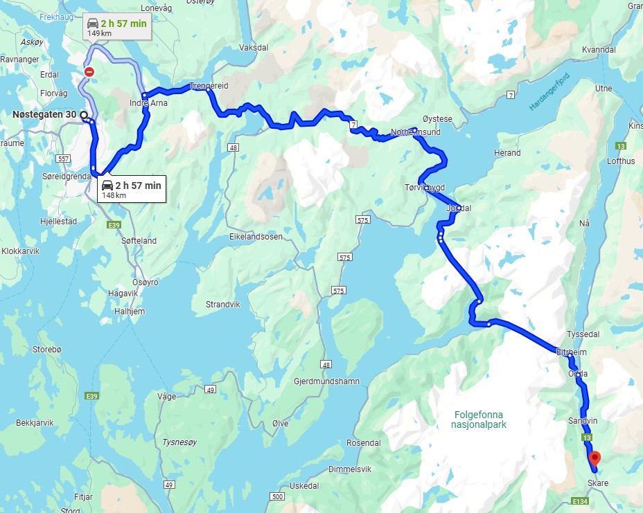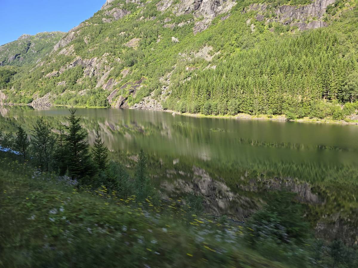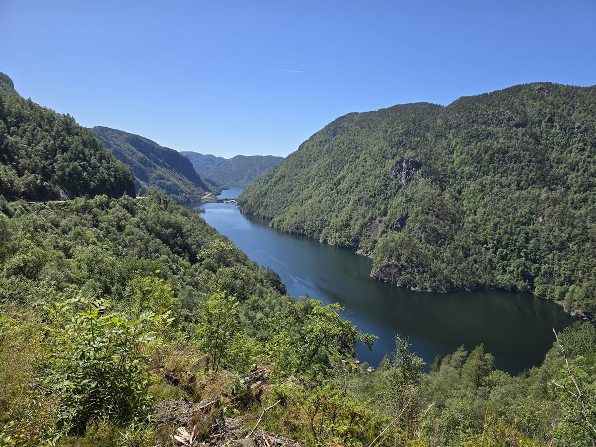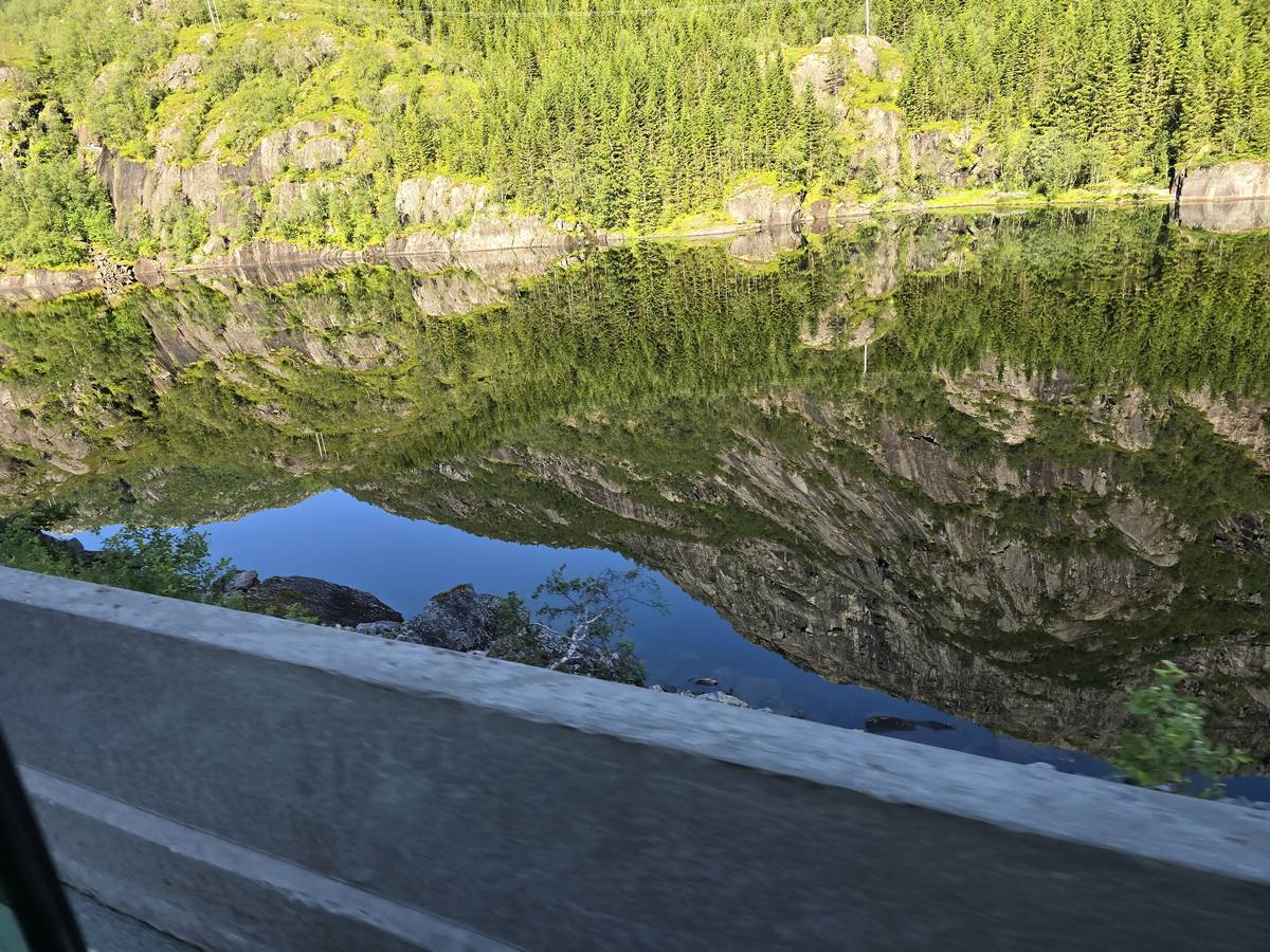 Nous quittons les cascades jumelles de Latefossen en direction du Preikeistolen, non sans avoir pris quelques clichés de ces merveilleuses chutes tombant dans un bruit étourdissant qui nous a "bercé" toute la nuit! Nous bivouaquons à Jorpeland près Preikeistolen. (Coordonnées : 59.006104, 6.060958)