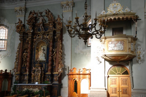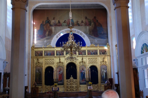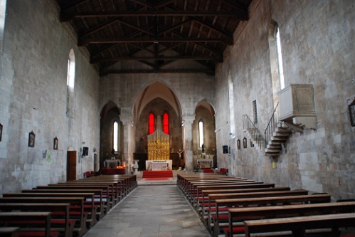 Premier bâtiment après l'entrée à gauche, l'église Saint-Sauveur :
