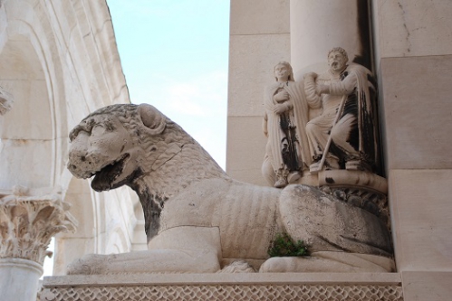 Appelée aussi la statue de Grégoire de Nin, en français, cette statue rend hommage à l'évêque qui a réussi à obtenir que les messes soient énoncées en slavon (langue liturgique) et non plus en latin au XIème siècle. Cette magnifique statue, située face à la porte d'Or du Palais de Dioclétien, a été réalisée par Ivan Mestrovic en 1929. Ne pas hésiter à toucher son orteil car cela porte chance ! (les habitants de Split passant devant ont d'ailleurs pris cette habitude, et l'orteil est par conséquent, beaucoup plus clair que le reste de la statue). Malheureusement cette statue était en réfection et cachée par des plaques de novopan. Seul le gros orteil était apparent.