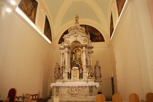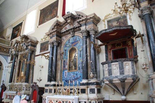 La jouxtant, l'église des franciscains extérieure et intérieure :