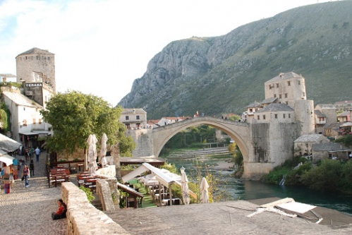 La belle Mostar, ville typique de Bosnie qui se remet doucement de la guerre particulièrement intense en ce lieu :