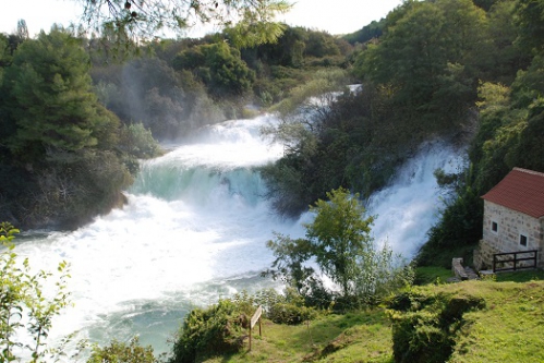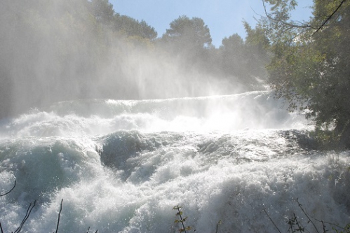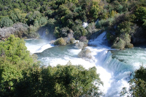9h30, le vendredi 26 septembre, nous partons pour Krk (prononcer Keurk, heureusement que ce n'est pas Brk !). Nous dormons sur le parking avec accord du gardien, parce que nous irons visiter le site le lendemain. Dès 9h00, nous sommes dans le car qui nous descend aux cascades :