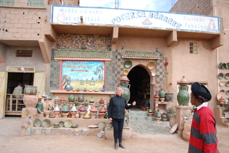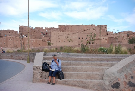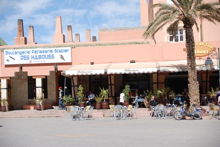 Les deux camping-cars amis s’en retournent en passant par Marrakech. Leur voyage est terminé, ils rentrent. Nous continuons seuls. Aujourd’hui, visite d’Ouarzazate. En partant, les amis nous déposent devant le « dimitri », nous entrons dans les souks. Place « el mouhahidine », nous dégustons une pâtisserie ainsi qu’un chocolat, à la pâtisserie des « Habouss », puis un tour au marché du Dadès, repas à coté «chez Nabil».