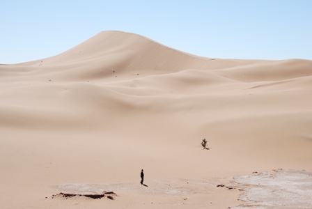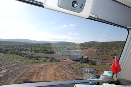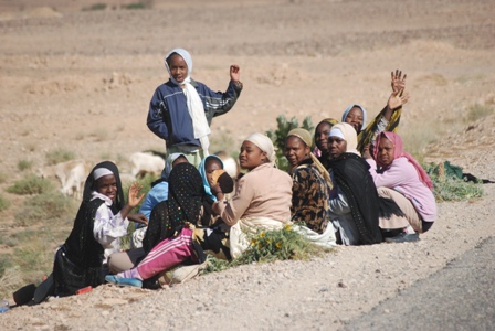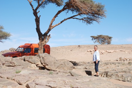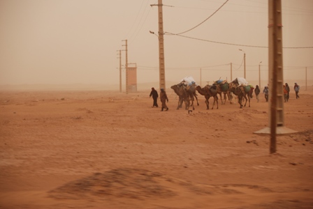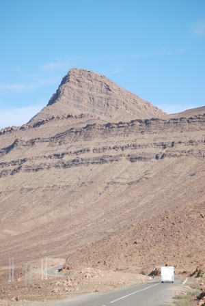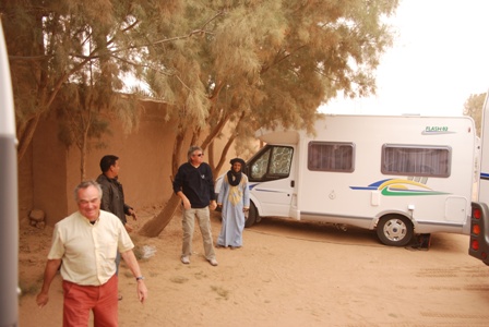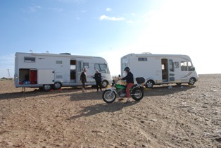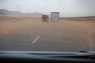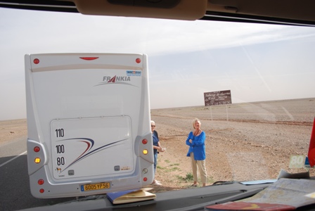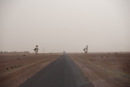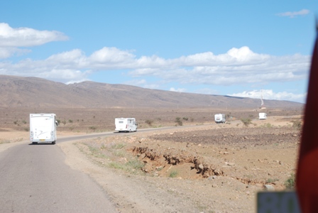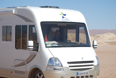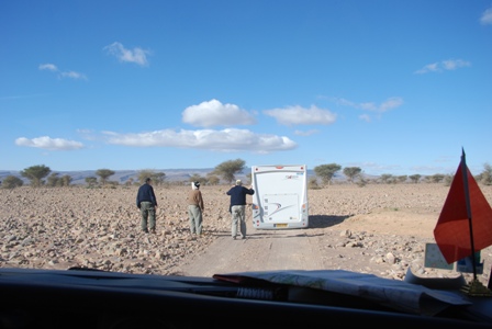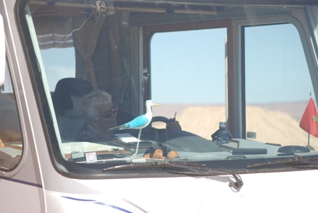 Départ pour « Plage Blanche » en passant par « Guelmin », où nous nous faisons caillasser. Beau soleil.