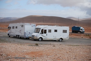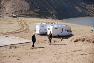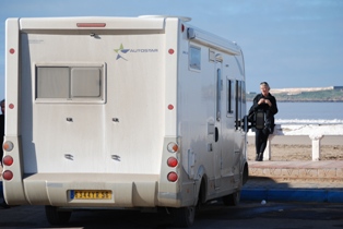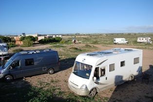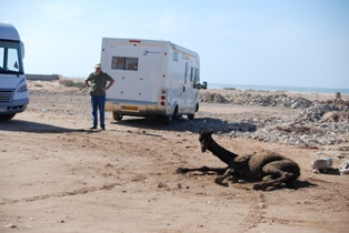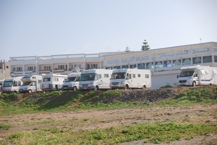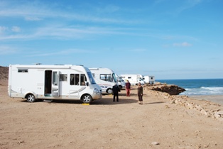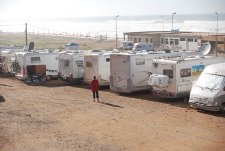 Nous espérions dormir à Tagazhout; nous nous installons, et, vers 21h, nous sommes contraints par la police de déménager vers la réserve camping-car à quelques kilomètres de là.