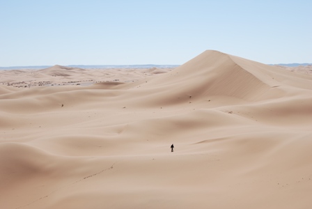 Le vent s’est levé, il y a une tempête de sable qui nous empêche de grimper et, surtout nous bouche l’horizon. Nos amis vont faire un tour à Merzouga. Quant à nous, nous vaquons à nos occupations, c'est-à-dire : nous bullons.