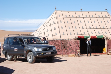 Arrivons au camping « le relais Hamada du Draa » où nous sommes reçu par Hassan, le propriétaire. Nous prévoyons un raid en 4X4 le lendemain.