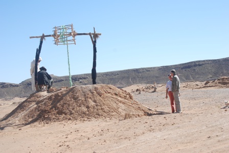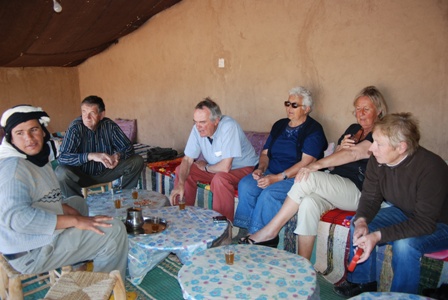 Balade la long du Sahara occidental – Escalade des dunes avant de manger dans une kaïmah : crudités, brochettes de viande, frites !!! – très bien. Belle promenade et très beau souvenir.