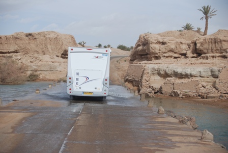 Sortie difficile pour Jean-Paul qui possède un camping-car Frankia, double essieux avec un long porte-à-faux. Obligation de remblayer 3 passages d’oued avec l’aide du père de Youssef, épique mais sympathique. Nous nous rendons à Merzouga. Comme le camping de Françoise est fermé (l’entrée est noyée sous l’eau), nous allons à la «gazelle bleue». Accueil enthousiaste de Mohammed. Electricité douteuse : 189v, le frigo ne fonctionne pas. Par contre, gratuitement, nous pouvons nous servir de son ordinateur pour consulter nos mails.