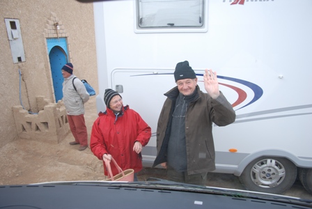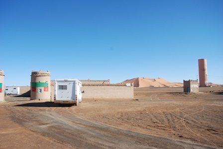 François se réveille, pris de vertiges. Il va consulter le toubib qui s’avère être un infirmier. Il lui confirme qu’il a une trop forte tension et lui conseille d’aller à l’hôpital d’Erfoud. Illico presto, direction l’hôpital d’Erfoud, à 2 camping-cars sur trois. Rien de très méchant, il peut poursuivre son périple. Puis camping "Tifina". Très beau camping. Hélas, il a plu la veille et toute la nuit, si bien qu’il ne reste que quelques emplacements sans trop de boue. Jean-Paul et mézigue retournons récupérer le camping-car de François à Merzouga. Nous monterons les dunes une autre fois, inch Allah.