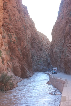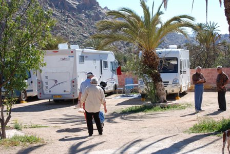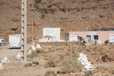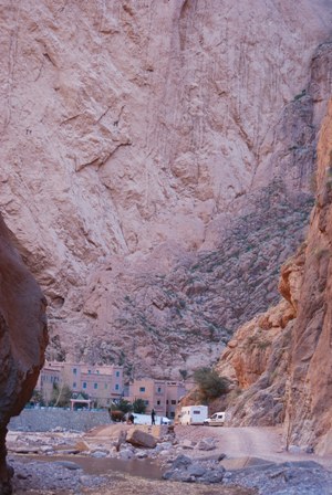 François va mieux, il peut conduire sans souci, nous reprenons la route vers Tinerhir et les gorges de Todra. Arrêt aux puits de Jorf (Khetarra), nous y déjeunons. Le soir bivouac au camping "le soleil" à quelques kilomètres de Tinerhir. Nous laissons 2 camping-cars, prenons le mien, et allons admirer ces fameuses gorges. Nous ne sommes pas déçus. Site magnifique, impressionnant. Vaut largement le détour. Soir couscous au camping.