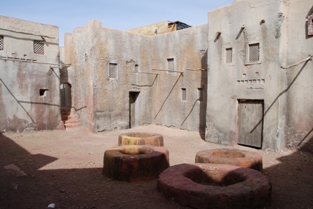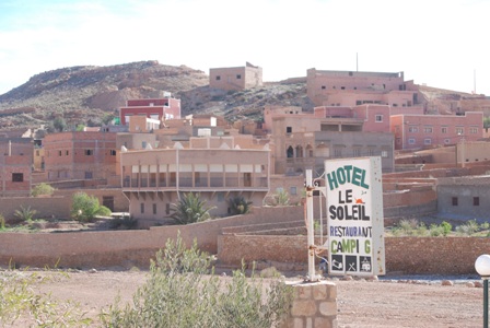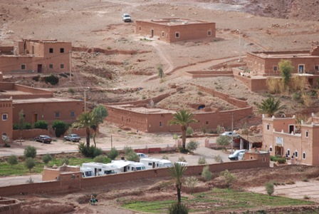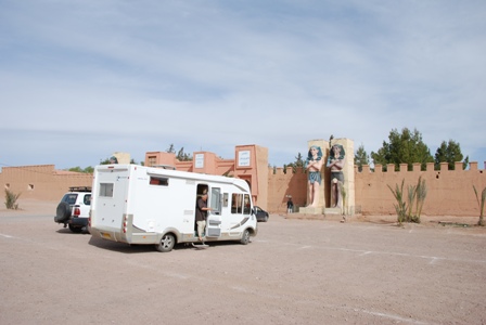 Dans la même optique, d’un commun accord, nous fuyons cette ville où nous ne sommes pas ennuyés par les gamins, mais par les adultes qui nous harcèlent. Nous passons par les studios de cinéma que nous visitons. Ensuite, nous nous dirigeons vers Aït Benhaddou et nous posons au camping « Kasbah du jardin ». Sanitaires décevants. Pas grave, nous ne restons qu’une nuit.