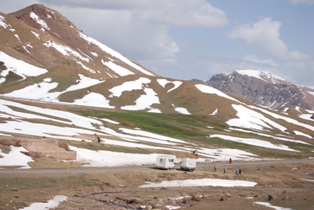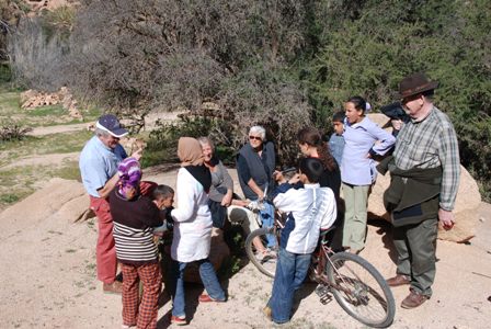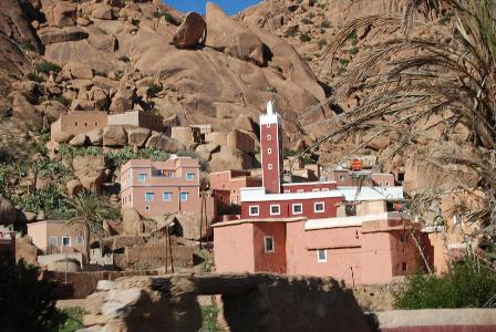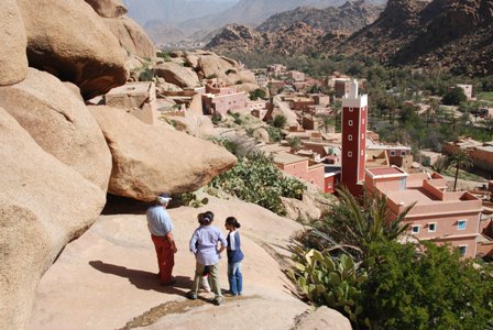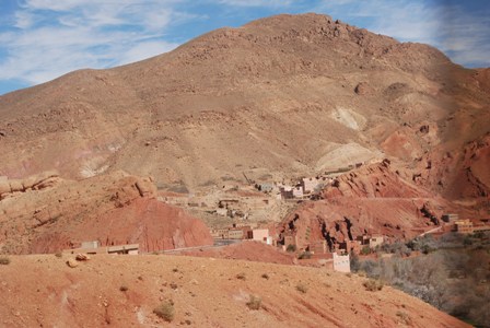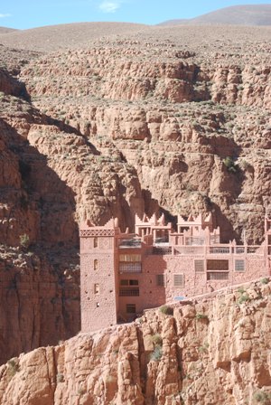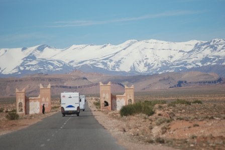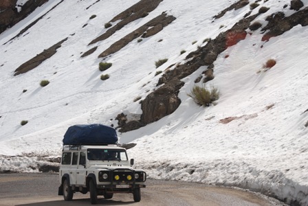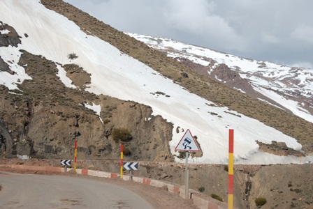 Les gorges du Dadès : arrêt à l’auberge "la gazelle", puis, je prends mon camping-car et emmène tout ce beau monde jusqu'à Tsemrir (environ 2200m d’altitude) dans la neige.