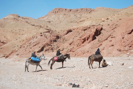 Passage du gué en mulet et âne, puis visite du Ksour,seuls.