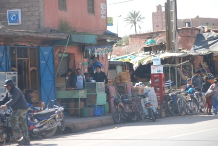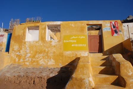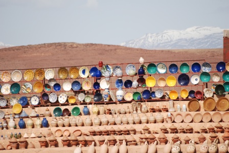 Nous filons sur Ouarzazate au camping municipal. Accueil très sympathique. Puis nous prenons mon camping-car et nous allons au ravitaillement chez «Dimitri». Il était grand temps : cela faisait plusieurs jours que je ne pouvais remettre l’apéritif journalier… Visite du marché en face de Dimitri.