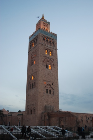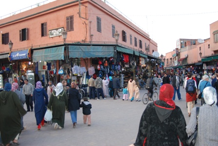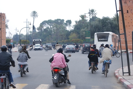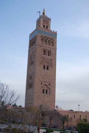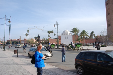 On pose le camping-car près du parking de la Koutoubia. Nous faisons le tour de Marrakech en car à étage, puis nous baladons dans les souks.