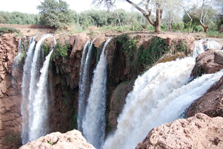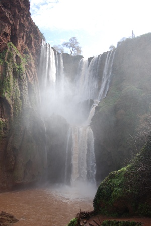 Visite des cascades d’Ouzoud, 100m de hauteur; impressionnant. Faisons connaissance avec une bande de magots (pas de bouts de cigarette, des petits singes) puis rentrons.