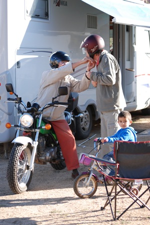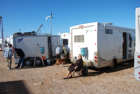 Rencontre avec un campingcariste très bricoleur, qui, lui aussi recharge ses 2 bouteilles de gaz. Une remorque avec un scooter et un véritable atelier roulant + 4 panneaux solaires + 1 éolienne + 4 batteries de 100A etc.
