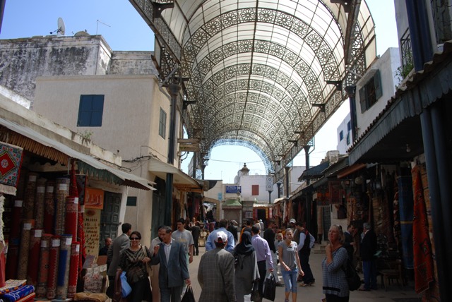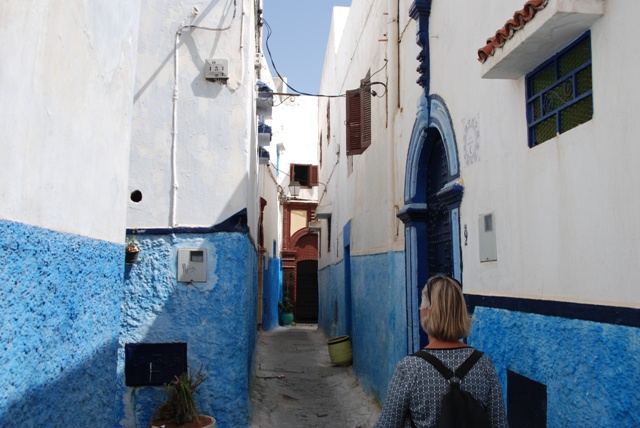 Stationnons sur le parking en bas des souks, puis visitons la Kasbah des Oudaïas, les souks puis le Mausolée Mohammed V et enfin la nécropole du Chellah.