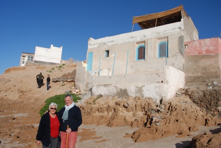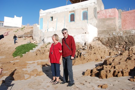 Promenade en bord de mer + visite maison de pêcheur avec Jean-Paul et Jacqueline et, avec le couple de bordelais rencontré à Oualidia.