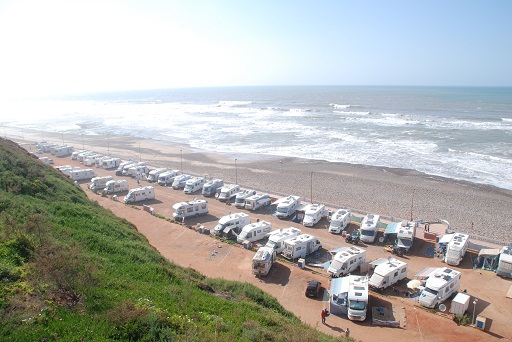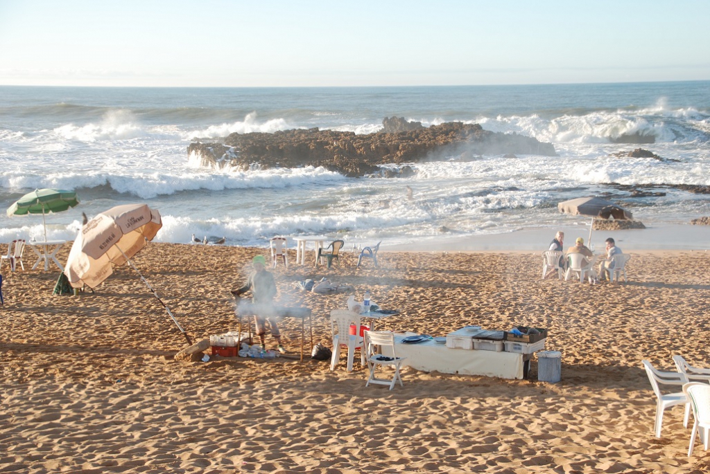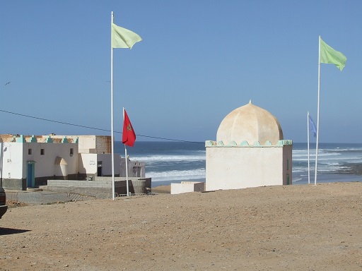 Le 22, le vendeur d'accessoires dont je ne me souviens plus du nom, vérifie le bon état du panneau solaire, tout fonctionne à merveille. Plus besoin de secteur, le soleil nous recharge les batteries dans la journée. A 11h, nous partons au camping "Ouassai beach" à Sidi-Ouassai. Ce camping se situe en bord de mer, et le bruit des vagues empêchera Evelyne de dormir. Nous y resterons 2 nuits.