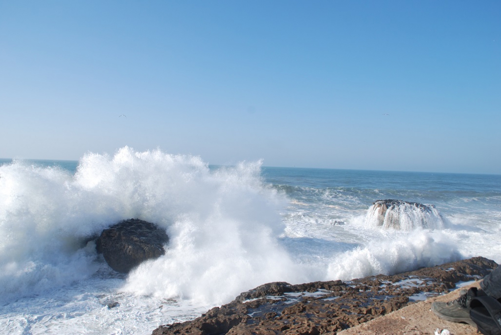 Arrivée sur Oualidia, le 04 janvier. Nous sommes le 05 janvier et, nous le passerons à Essaouira, la mer est déchainée.
