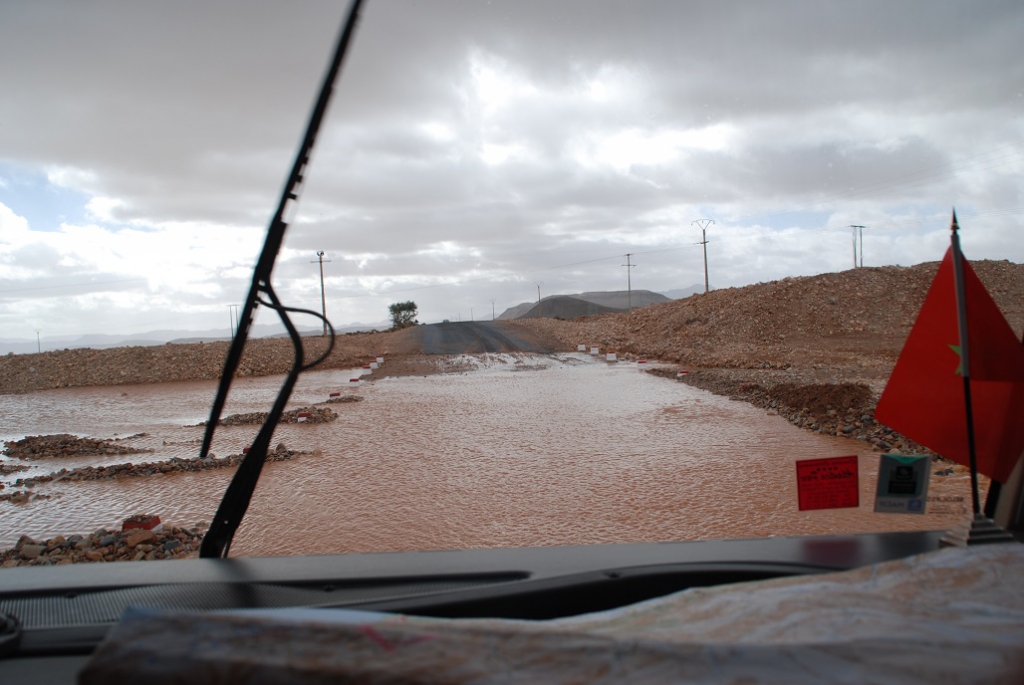 Puis Amtoudi (18-19) : Autant, nous avions aimé ce coin de paradis, autant nous sommes déçu. Non pas par ce coin qui est toujours aussi beau, mais parce qu'il a plu la première nuit, que l'oued a débordé et que nous n'avons rien pu faire. Nous sommes donc repartis en passant dans des oueds où il y avait de 10 à 20 cm d'eau. Le dessous du camping-car a été lavé. Le camping est à vendre, un pseudo gardien est là, sympathique, mais le camping est livré à lui-même. Il serait peut-être repris par le gérant d'Atlantica-park. A suivre. L'ancien gérant tient un restaurant dans Amtoudi.