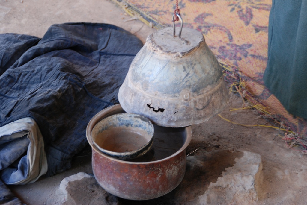 Le vendredi 07 mars 2014 : Je teste mes achats, en l'occurrence, un brùleur à gaz (Imi-Ouaddar), un coupe-vent (acheté à Tafraoute) et une bouteille de gaz type camping-gaz. ça a fonctionné environ une minute et le brùleur s'est bouché. Le gaz de la bouteille est sale, je n'insiste pas et nous finirons la cuisson dans le camping-car.
