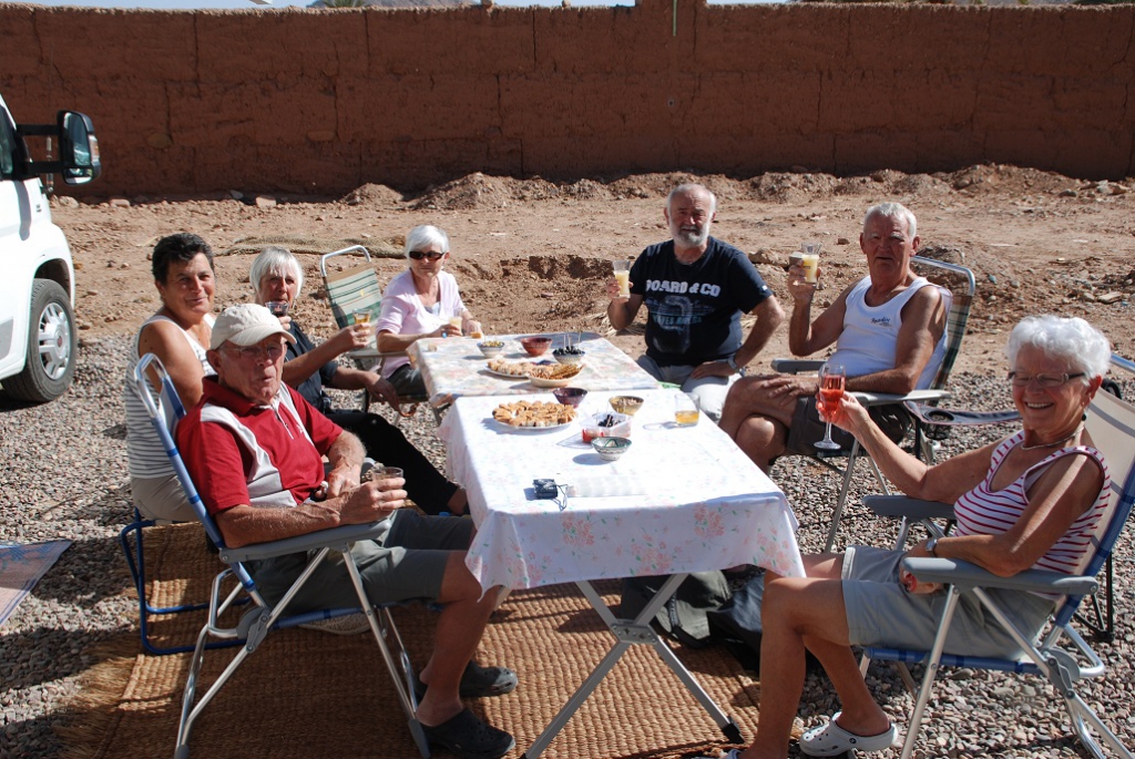 Enfin, le vendredi 21, nous prenons la route par la côte, pour arriver à Imi-Ouaddar, à "Atlantica-Park". Après-midi, balade dans le camping et retrouvaille des "Pierrog" et leurs neveu et nièce, ainsi que Christiane et Pierrot. On taille une petite bavette, puis nous rentrons, c'est l'heure de l'apéro (la figure est écarlate, est-ce le soleil ou les apéros ?).