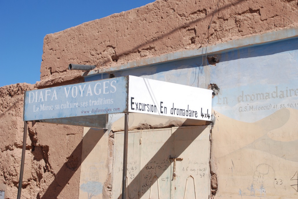 Je suis allé aux nouvelles, un camion français, ayant une remorque transportant des quads est rentré dans le parking de l'hôtel un peu plus haut et n'a pas vu les câbles téléphoniques. Résultat : 3 poteaux coupés en deux, et des fils arrachés un peu partout. Nous avons bien essayé de bidouiller, mais en vain. Tout cela a été réparé hier, pendant que nous étions partis faire une virée en 4/4 du coté de Chigaga (non, ce n'est pas un ordre donné à lady Gaga). Hier soir, l'internet était instable et je n'ai pas insisté. INWI ne marche pas.