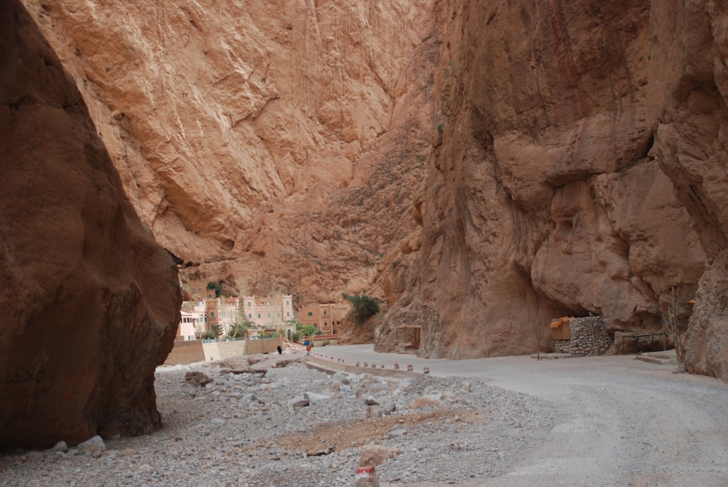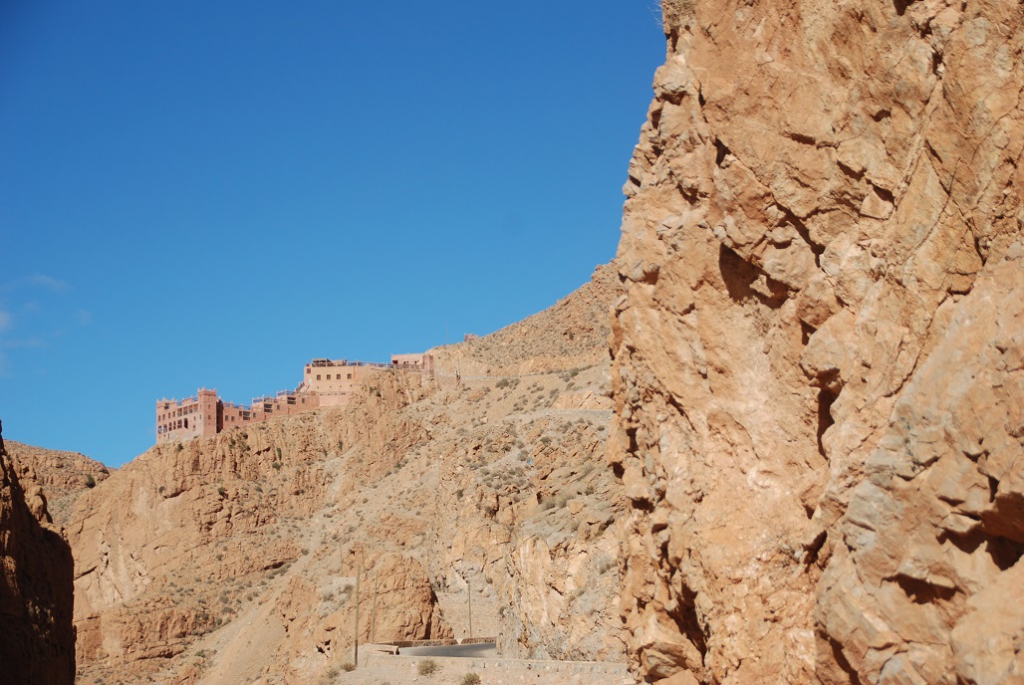Le samedi 01 février, nous prenons la route pour les gorges du Todra, via Rissani et Erfoud. Nous dormons au camping "le soleil".La route de Tinheghir jusqu'au camping est en travaux et des passages au ras du vide nous ont fait une belle frayeur. Le soir, nous faisons une petite balade dans les gorges (environ 10Kms).