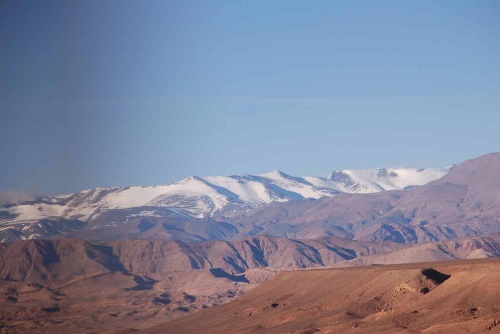 Le lendemain, dimanche 02 donc, nous enclenchons la sixième vitesse et... nous visitons les gorges du Todra (demi-tour en sortie après les marchands du temple), nous déjeunons avant Tinheghir avec vue sur les montagnes enneigées, puis les gorges du Dades (demi-tour en haut face à l'hôtel) et enfin direction Ouarzazate.