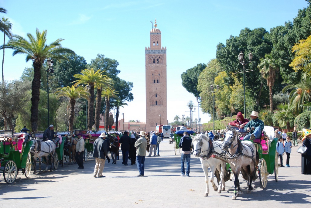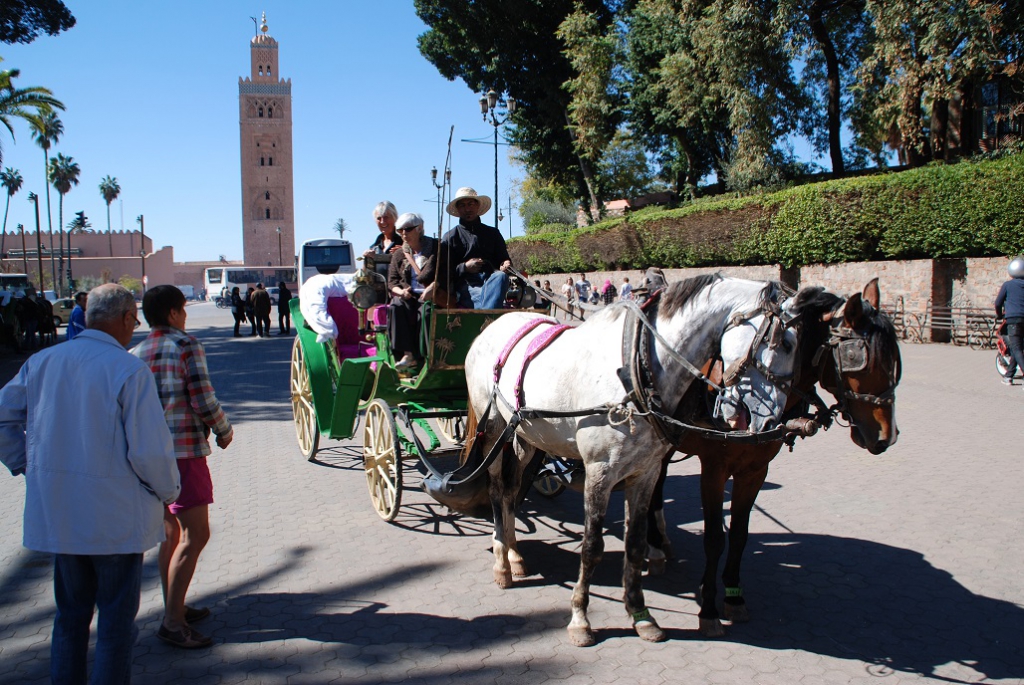 Retour vers la place Jamaal-el-Fna en calèche, Violette est aux rênes.