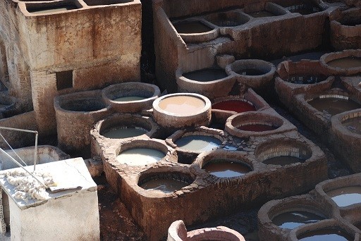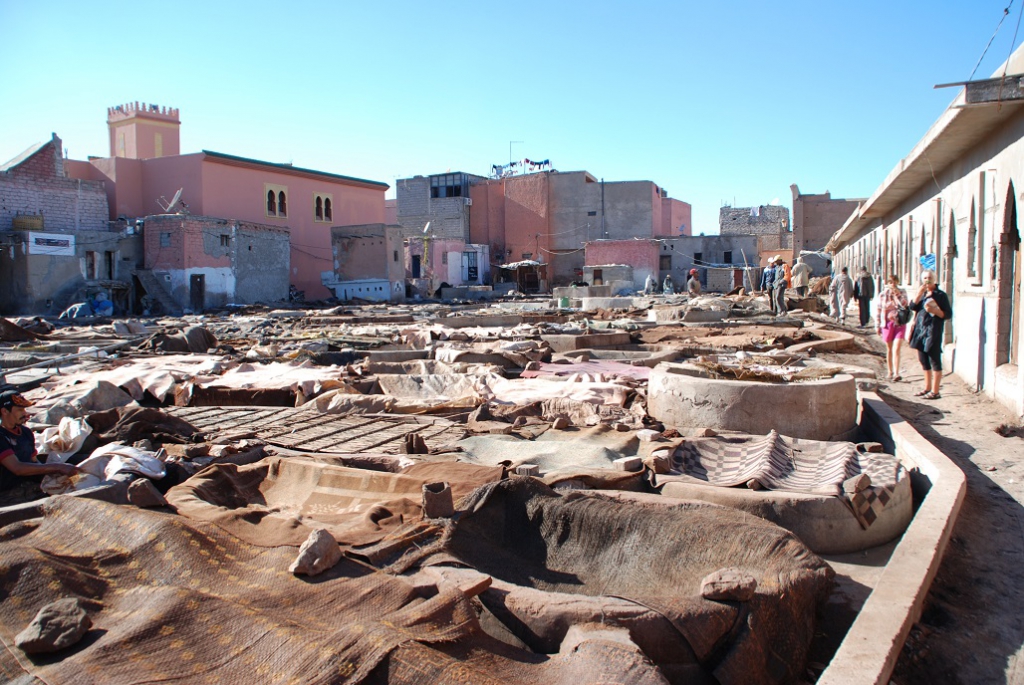 Visite des tanneries, odeurs presque insupportables, heureusement que l'on nous donne un brin de menthe à mettre sous le nez.