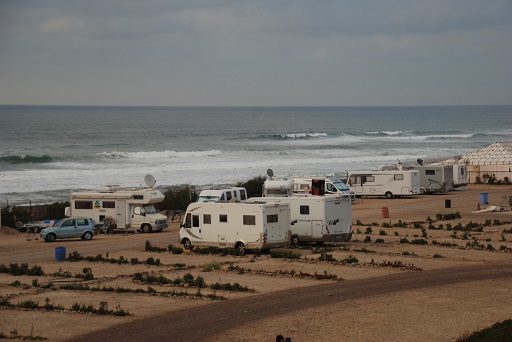 Arrivée "Océan bleu" à Mohammédia, chez Ali. Le camping est pratiquement plein, nous trouvons 2 emplacements pour passer la nuit, le lendemain matin, le camping s'étant vidé d'une grosse partie de ses occupants, nous retrouvons des places plus agréables.