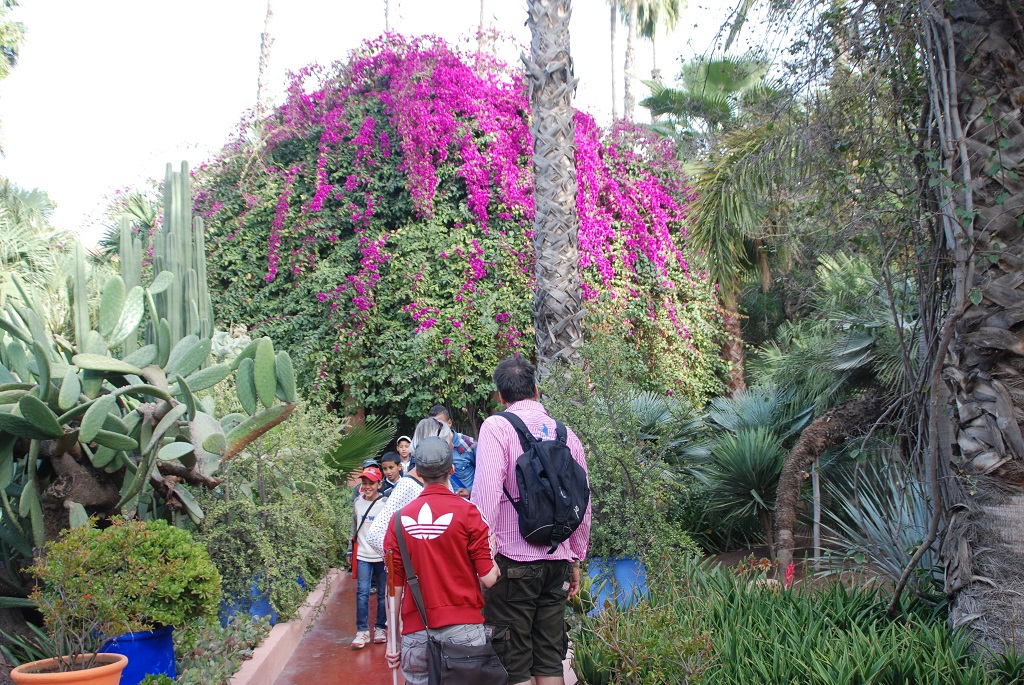 Journée de repos le 12 février. Le 13, nous nous faisons déposer devant les jardins de Majorelle, accompagnés de Violette et Gérard (les Gevi24).