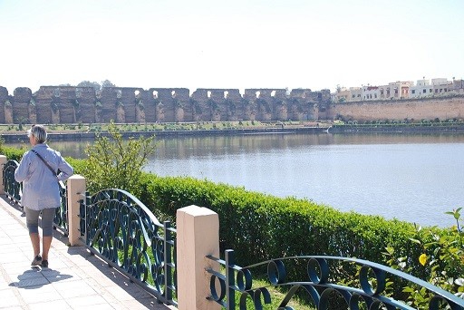 On nous parque dans un endroit pas très agréable près du vide-cassette qui se déverse directement dans l'oued, derrière le mur. Ceci engendre une forte odeur qui, vous vous en doutez un peu, est nauséabonde, de plus, nous sommes envahis par les mouches. Enfin, nous sommes près des jeux d'enfants (ce sont les vacances au Maroc) et les cris empêchent de faire la sieste, et ça, pour un retraité, c'est primordial. Bref, on hésite : Est-ce qu'on reste ?